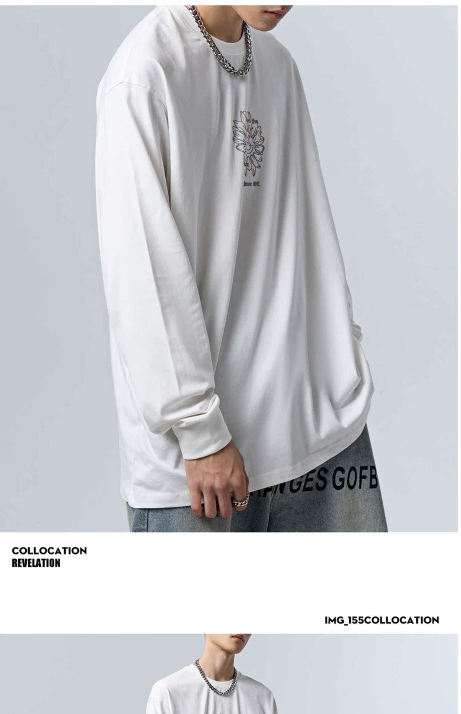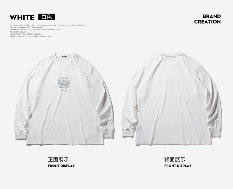 Весенний лонгслив с круглым воротником для отдыха, белая толстовка подходит для мужчин и женщин для влюбленных, тренд сезона