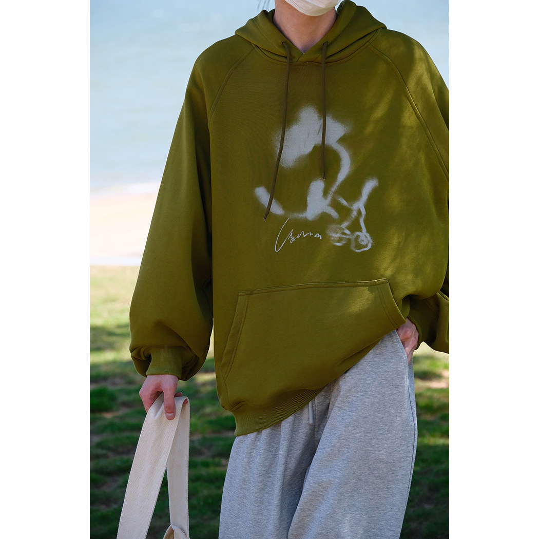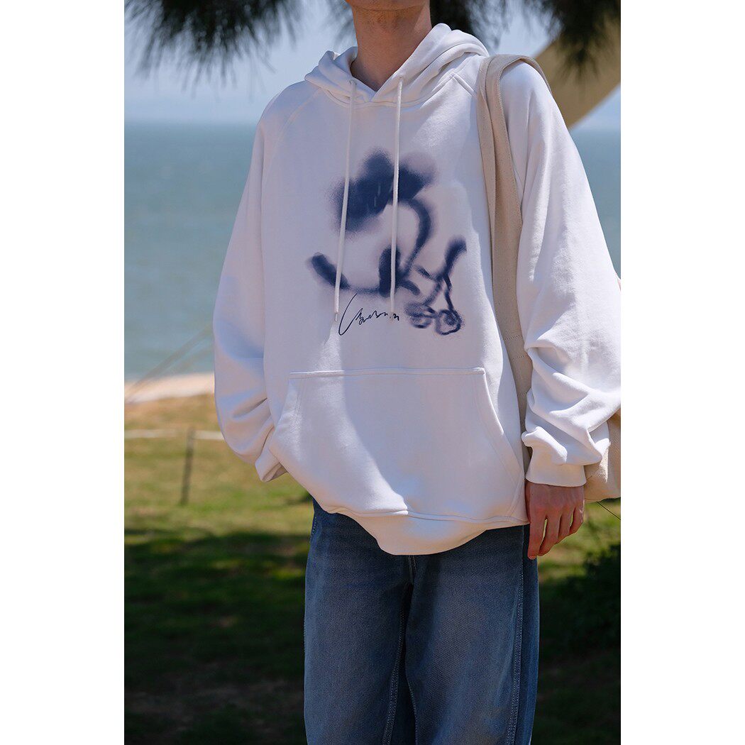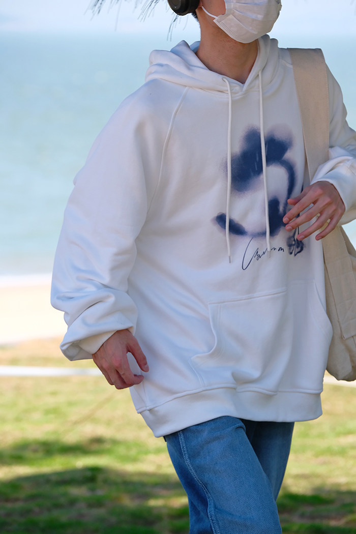 Оригинальная ткань, трикотажное платье, толстовка с капюшоном подходит для мужчин и женщин, кола, ручная роспись, в цветочек, свободный крой