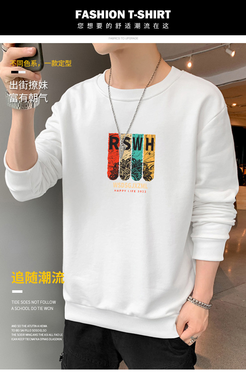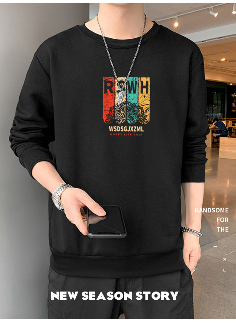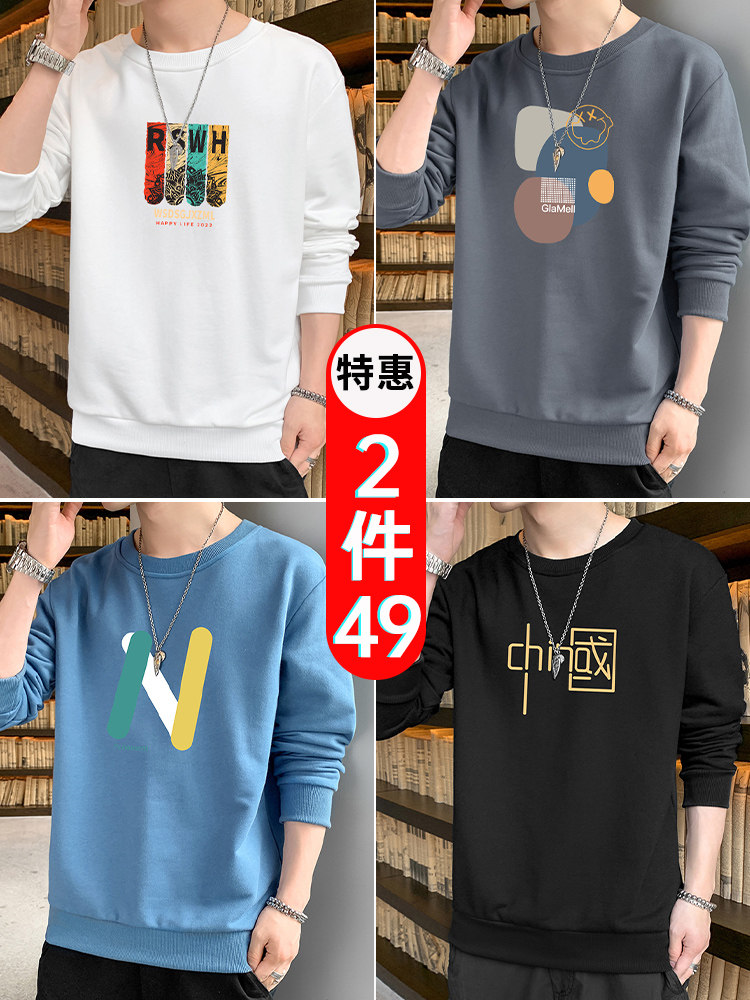 Tide, мужская осенняя толстовка, трендовый осенний универсальный лонгслив с круглым воротником, оверсайз