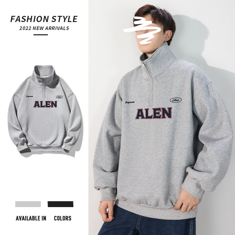 Ретро демисезонный свитшот с молнией, в американском стиле, воротник поло, на молнии, оверсайз