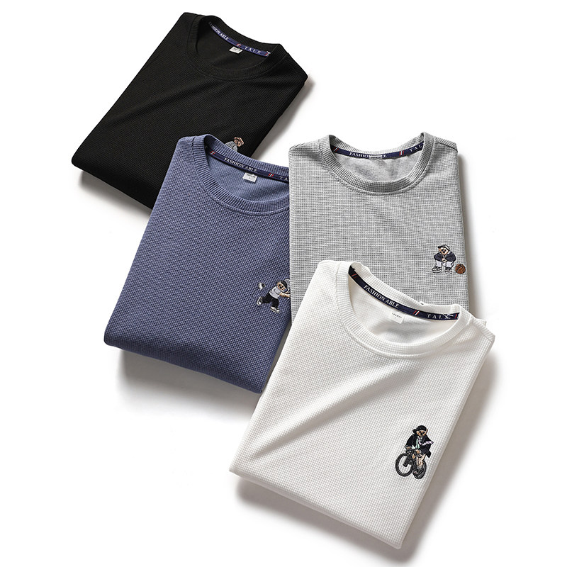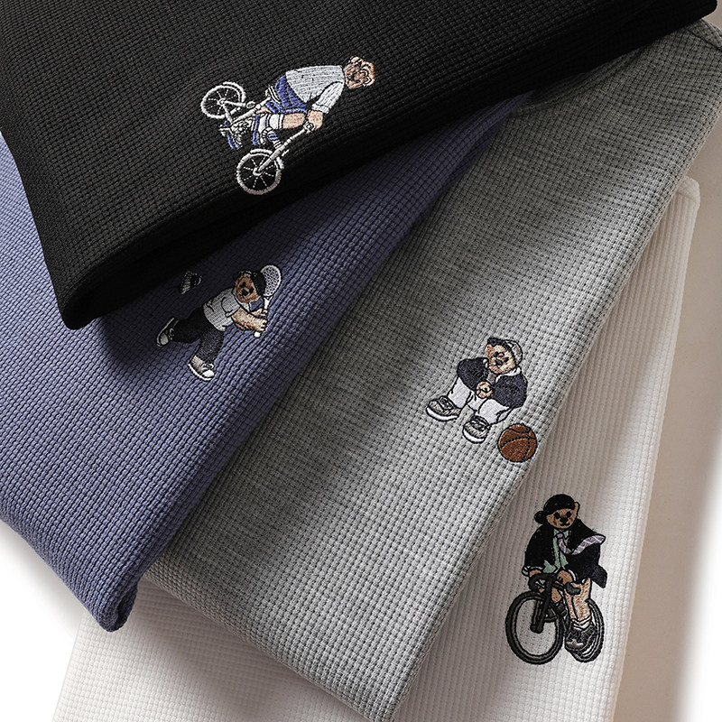 Качественная комфортная осенняя однотонная базовая толстовка с круглым воротником, с медвежатами, с вышивкой