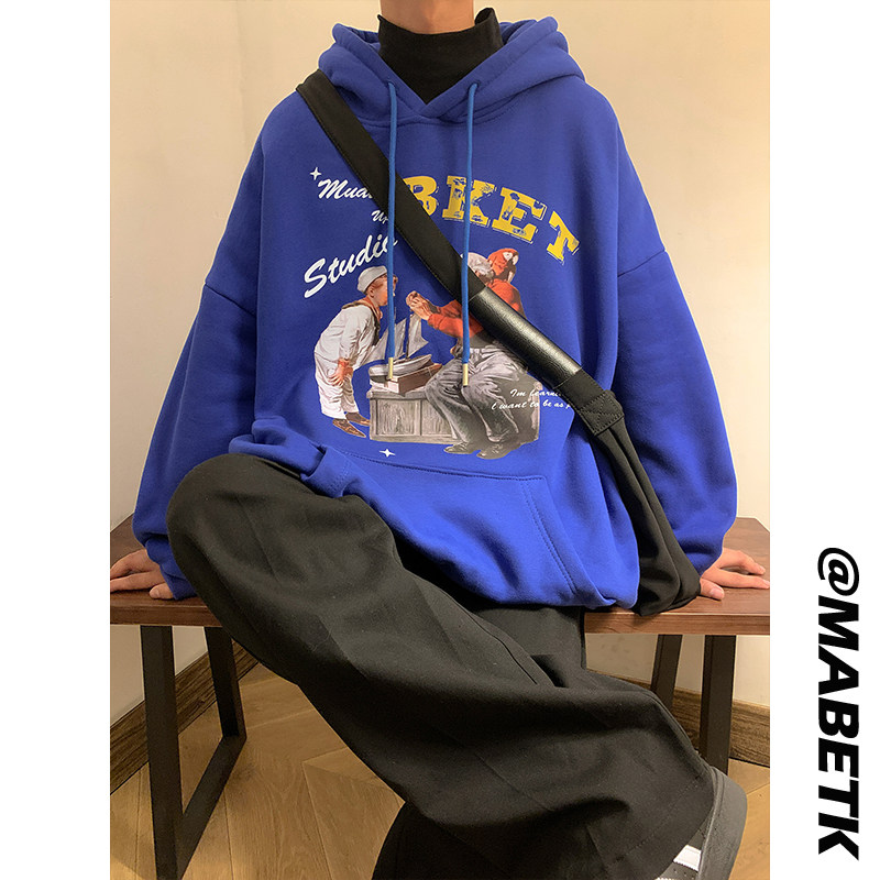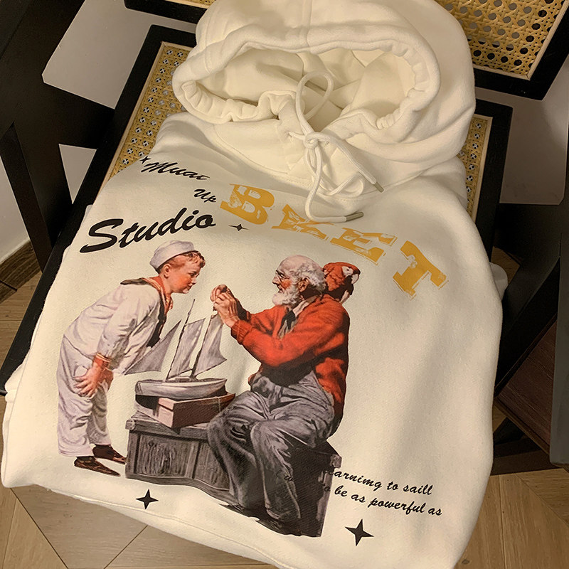 Демисезонная осенняя ретро утепленная толстовка с капюшоном, оверсайз, в американском стиле