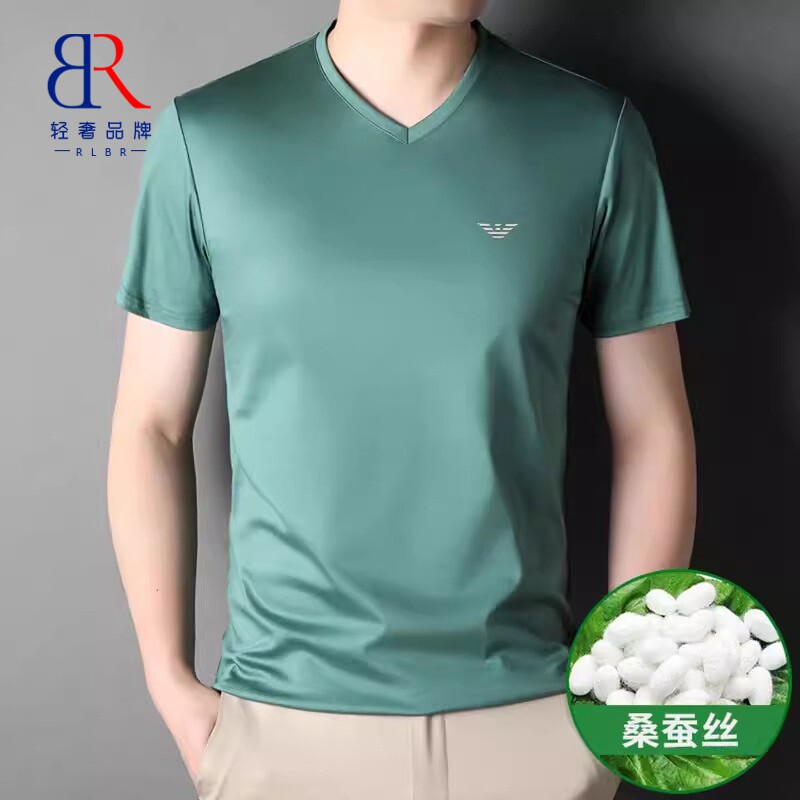 Летняя тонкая цветная модная трендовая шелковая футболка, короткий рукав, V-образный вырез