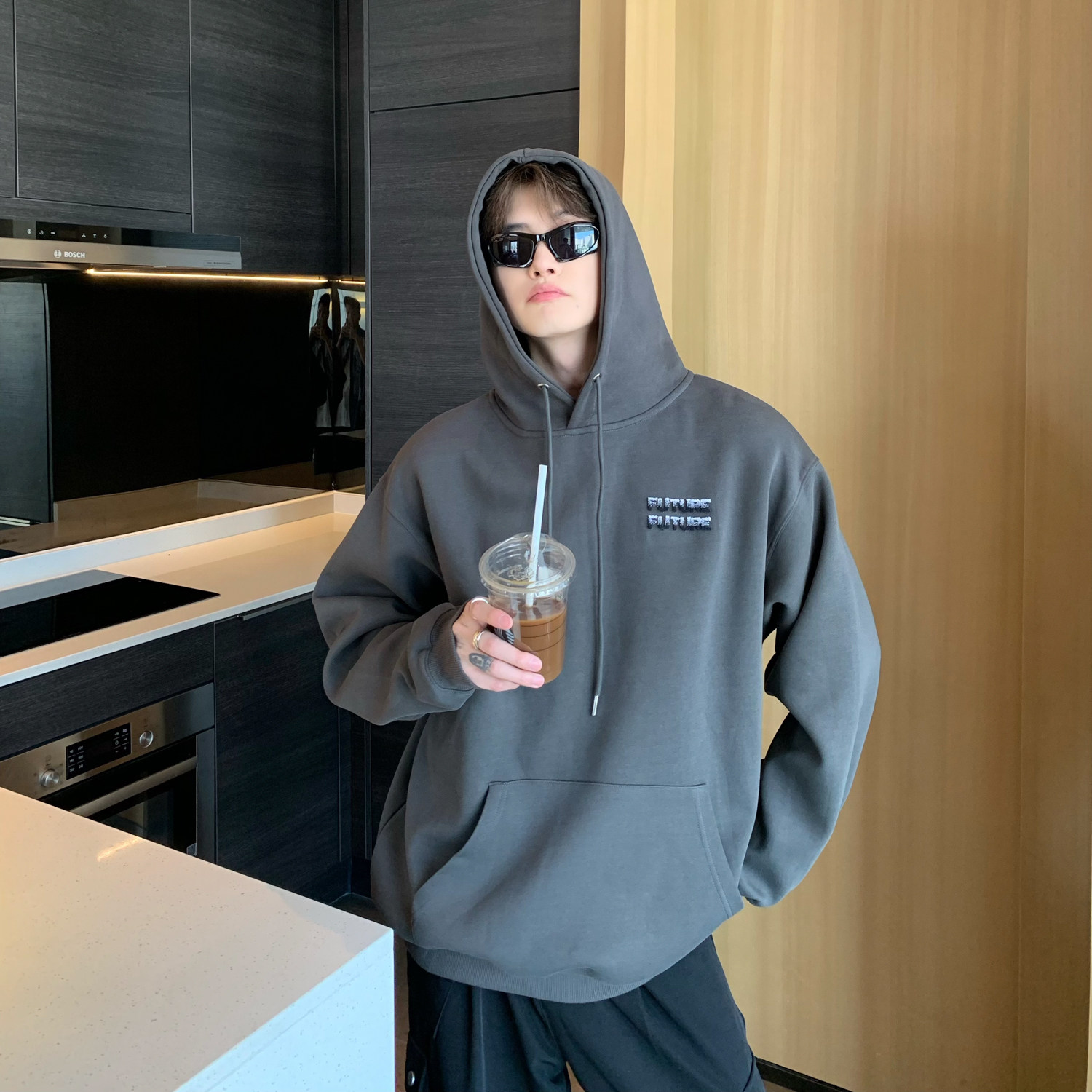 Трехмерная дизайнерская толстовка с капюшоном, брендовый лонгслив, куртка, тренд сезона, оверсайз, в корейском стиле