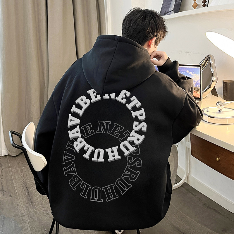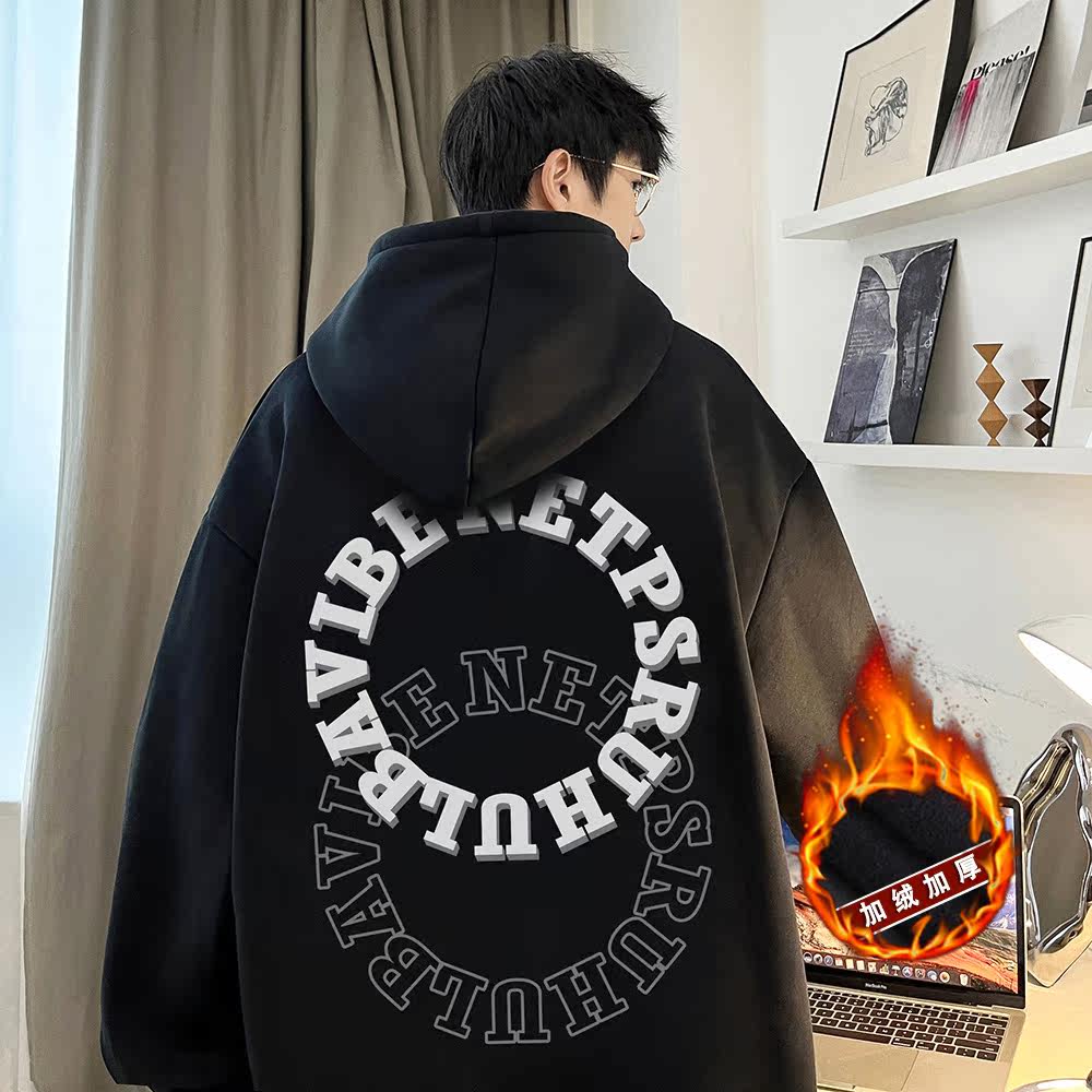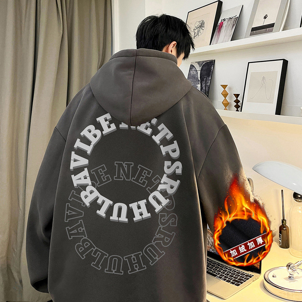 Мужская утепленная утепленная толстовка, демисезонная толстовка с капюшоном с капюшоном, куртка, европейский стиль, в американском стиле, оверсайз