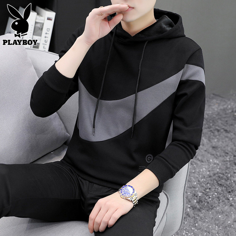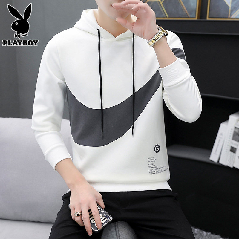 Playboy, базовая приятная телу мужская демисезонная толстовка с капюшоном, утепленный лонгслив