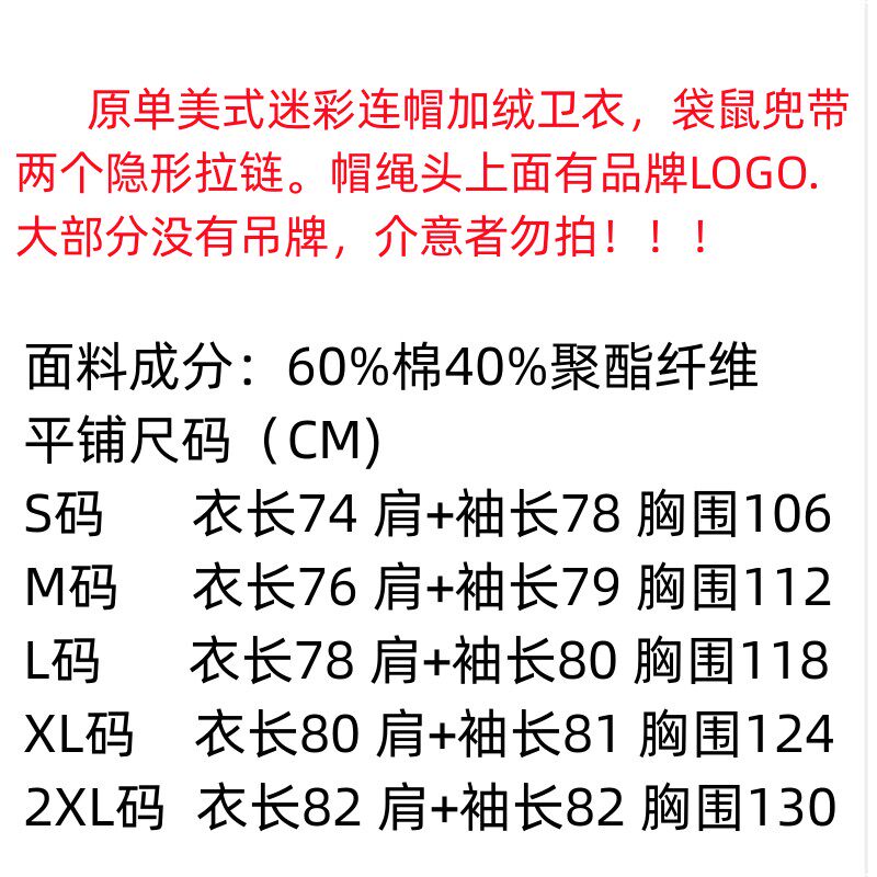 Кенгуру, камуфляжная невидимая утепленная толстовка с молнией, бархатная куртка, в американском стиле, с вышивкой, свободный крой