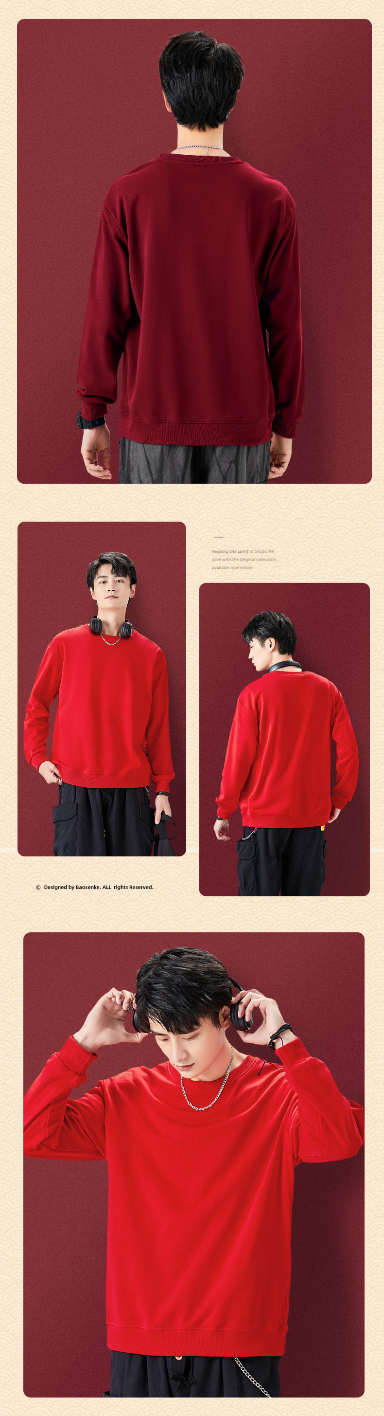 Мужская красная демисезонная толстовка, демисезонный оберег на день рождения, удерживающий тепло лонгслив с круглым воротником, куртка, увеличенная толщина, для влюбленных