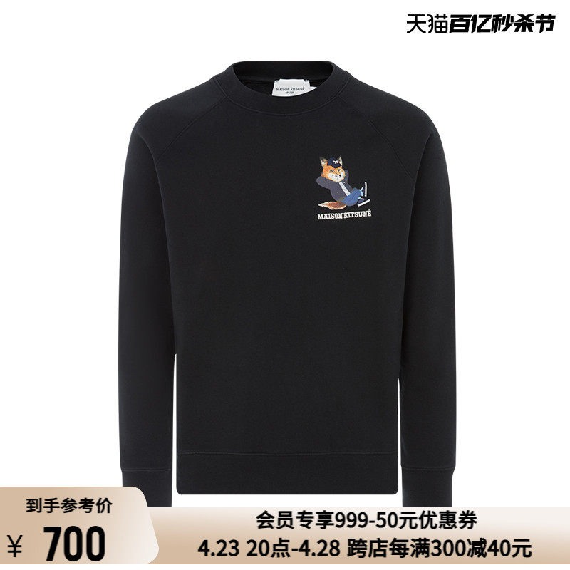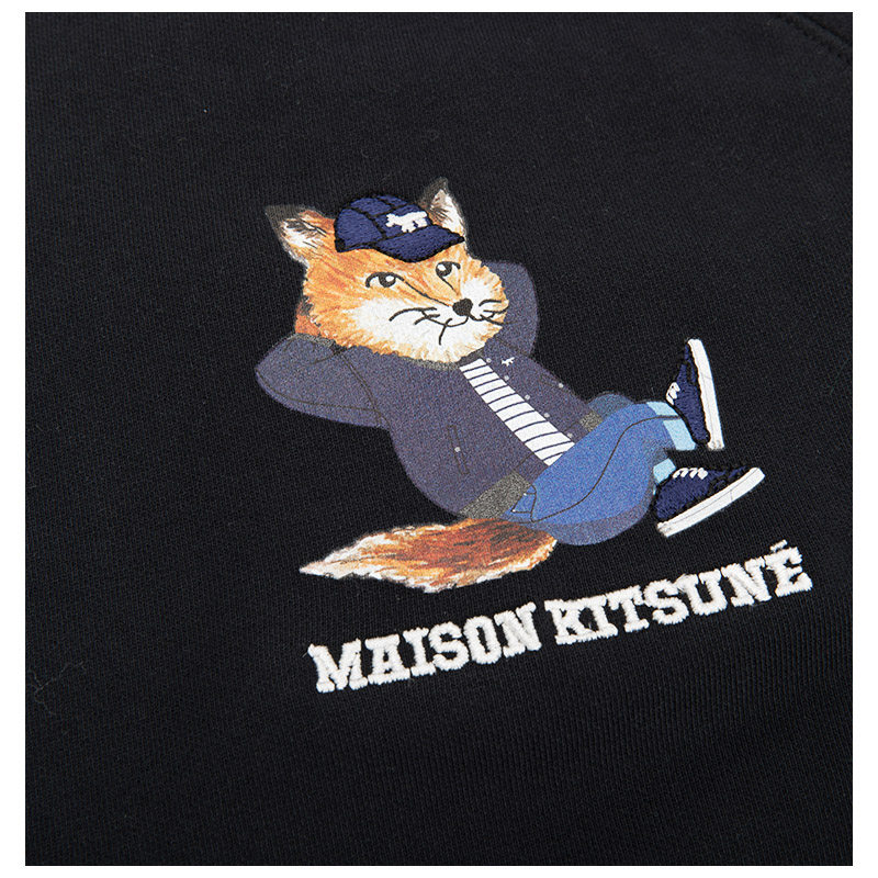 Maison Kitsune Черный лонгслив, свитшот, принт, с печатью вашего логотипа