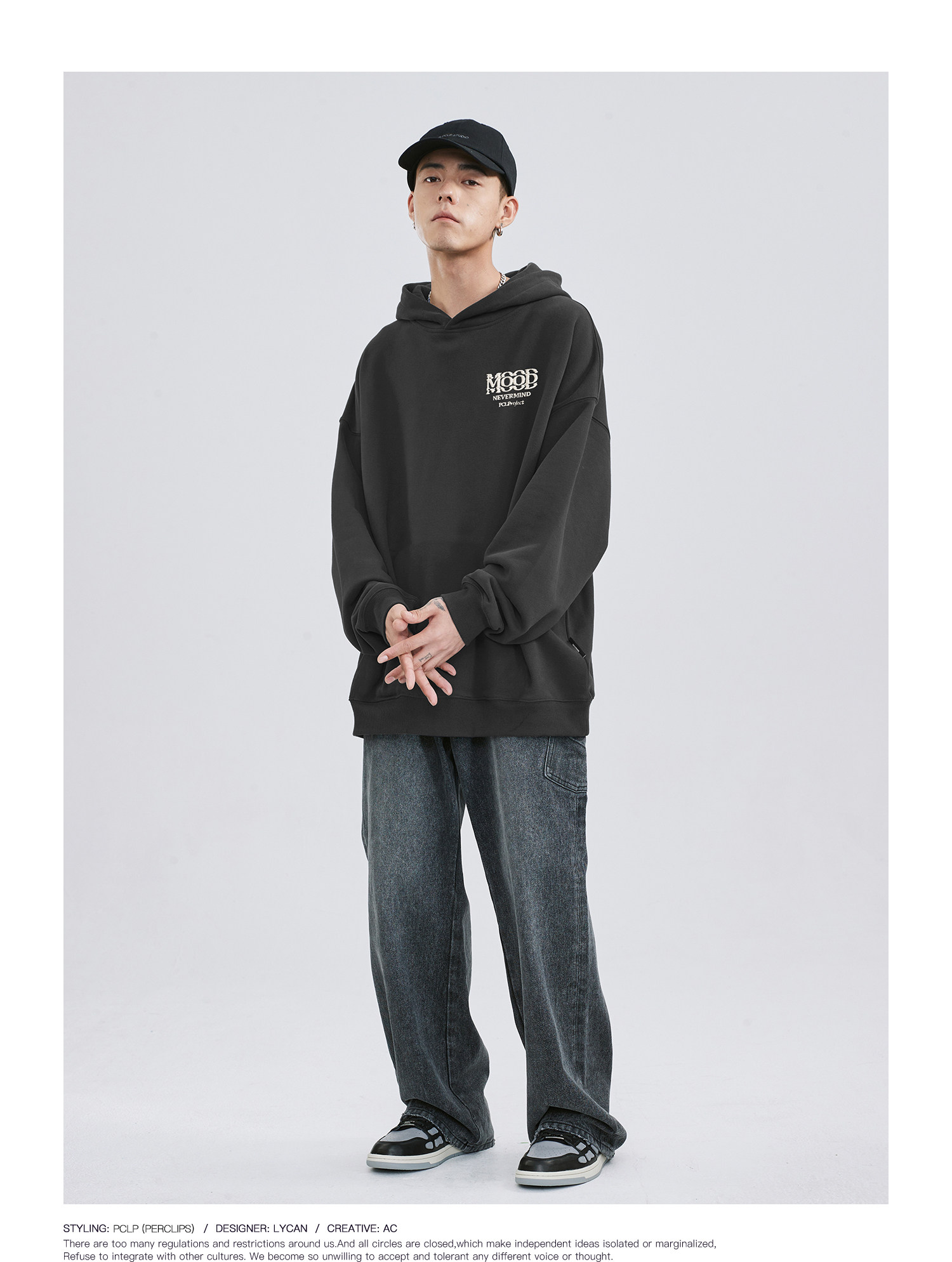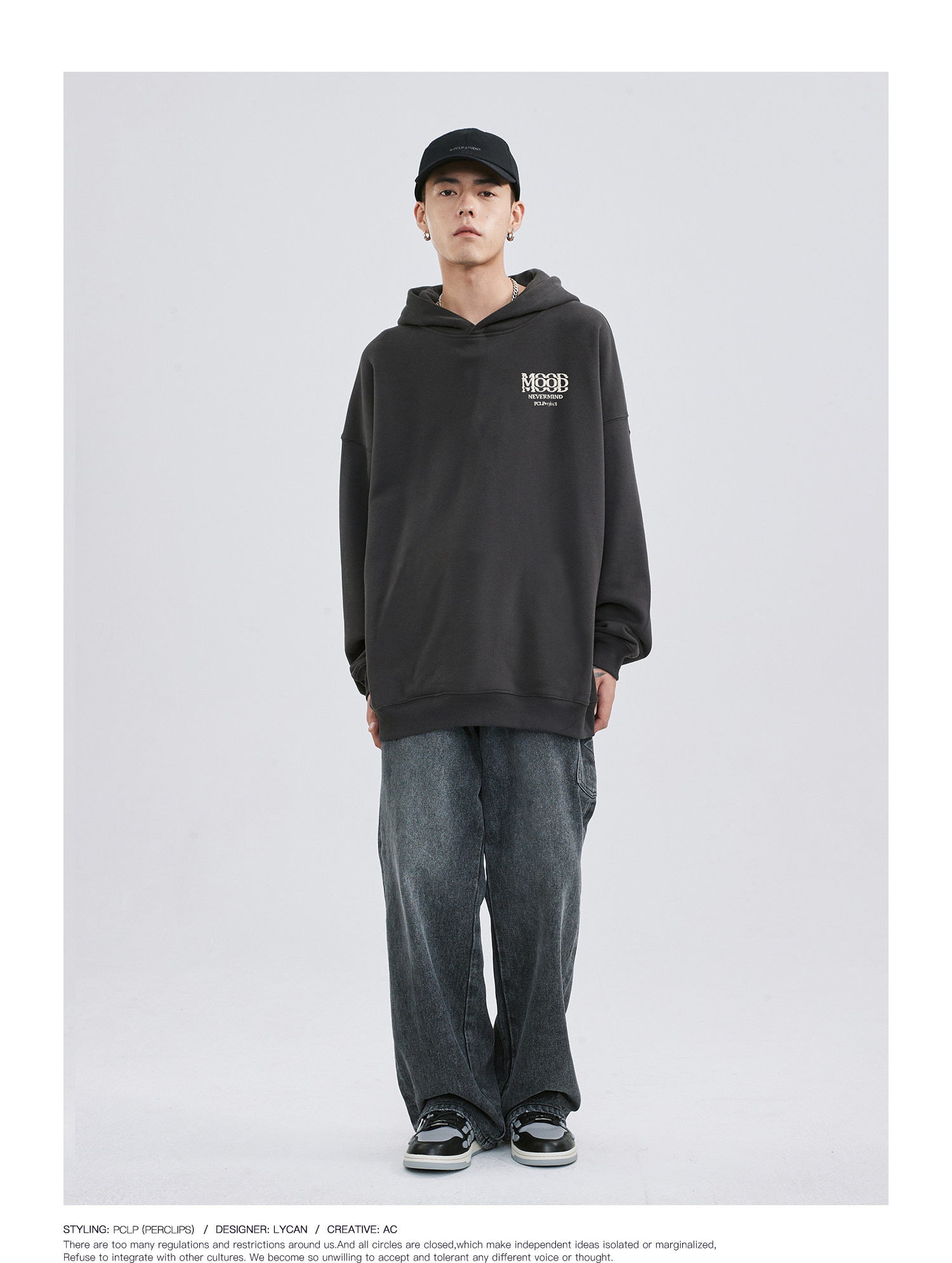 PCLP Демисезонный балахон, ретро трикотажная толстовка с капюшоном, этнический стиль, свободный крой, в американском стиле
