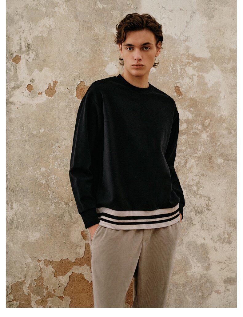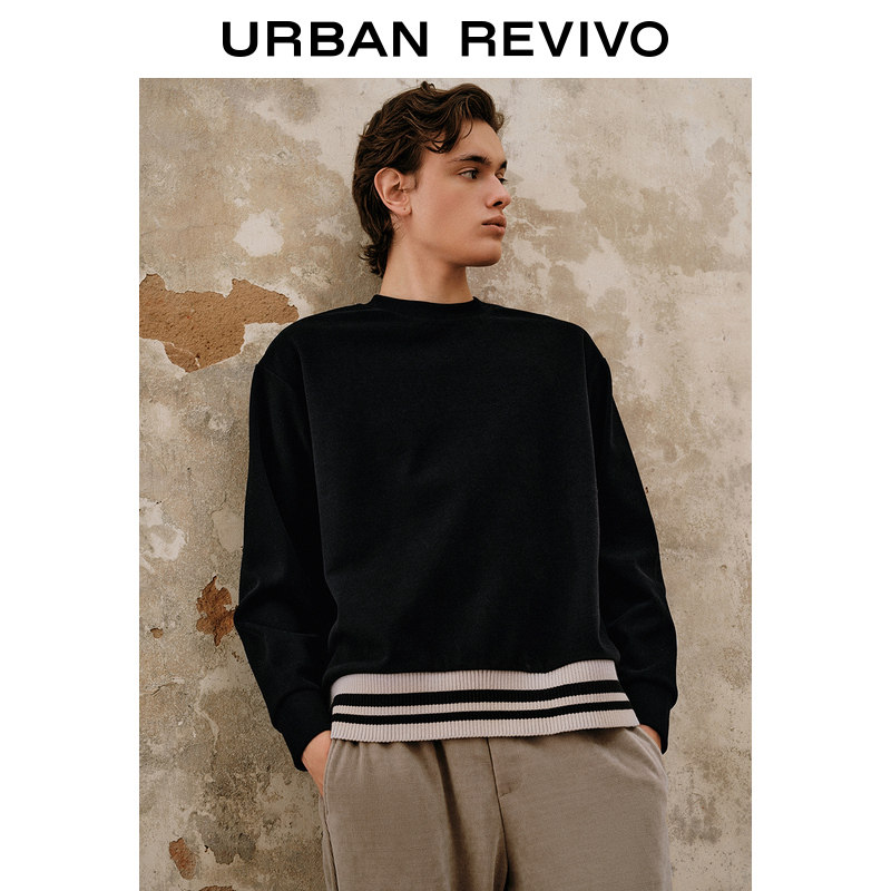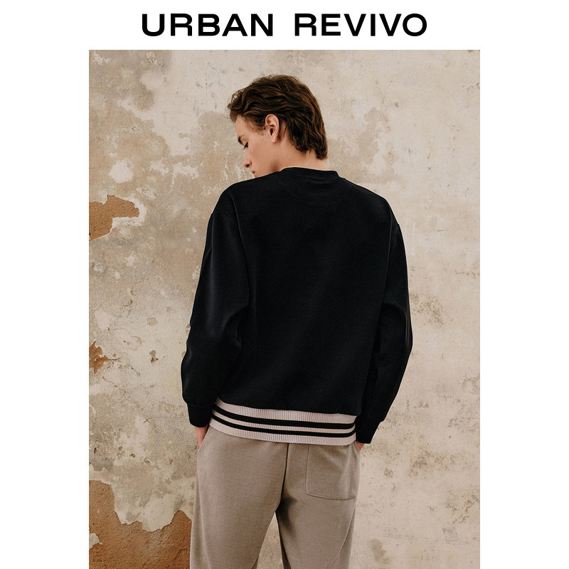 UR Новый мужский стиль досуга, контрастные цветные ребра, полосатые полосатые фунты, тяжелые слот -свитера UML432002