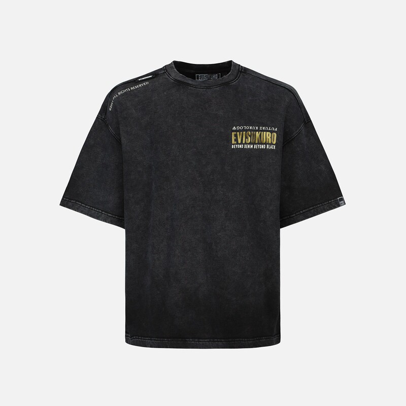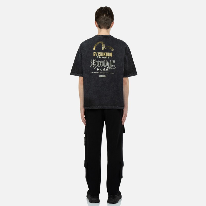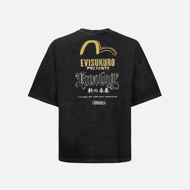 Мужская и женская потертая толстовка с короткими рукавами EVISU KURO с рукописным логотипом 2ESGNM3SW413BZCT