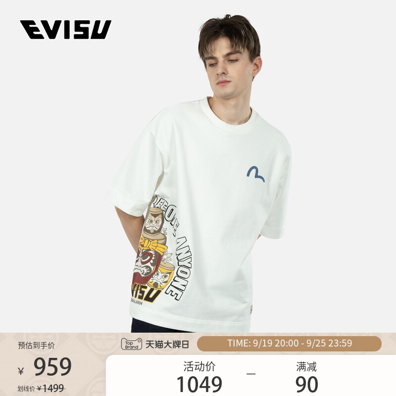 EVISU Мужская толстовка с круглым вырезом и короткими рукавами с принтом Taiko Daruma для мужчин и женщин 2ESHTM3SW326OSCT