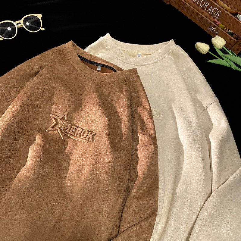 Бархатная осенняя толстовка, футболка с круглым воротником, коллекция 2023, в американском стиле