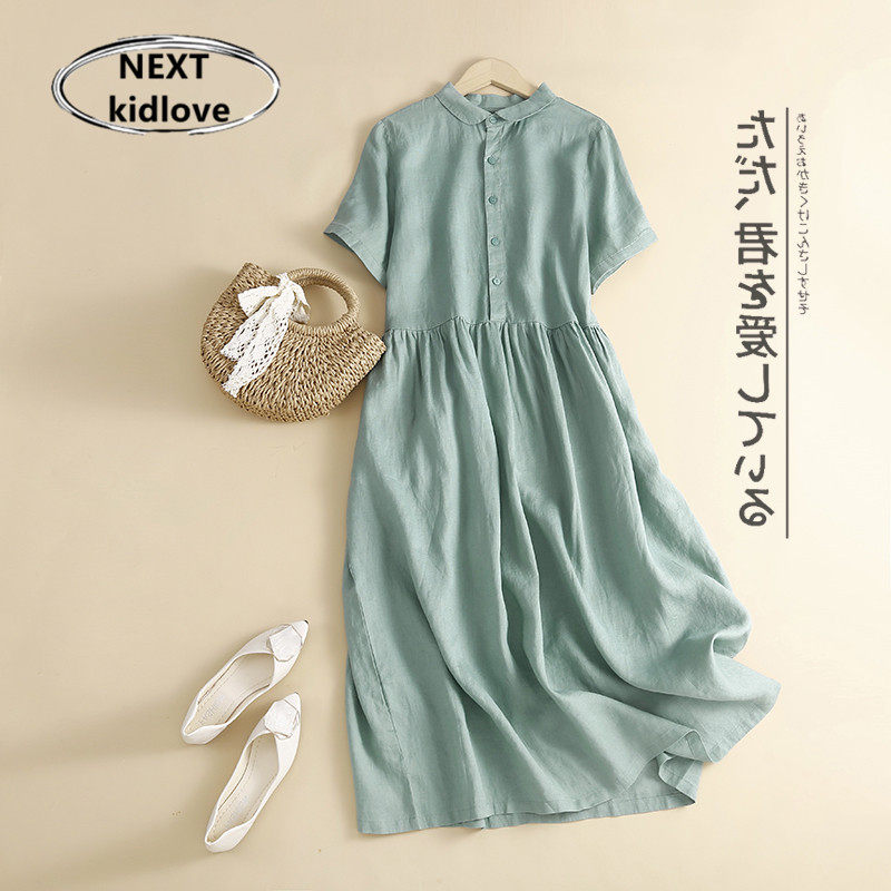 Цветное летнее платье, тонкая юбка, рубашка, кукла, Гонконг, из хлопка и льна, короткий рукав, А-силуэт