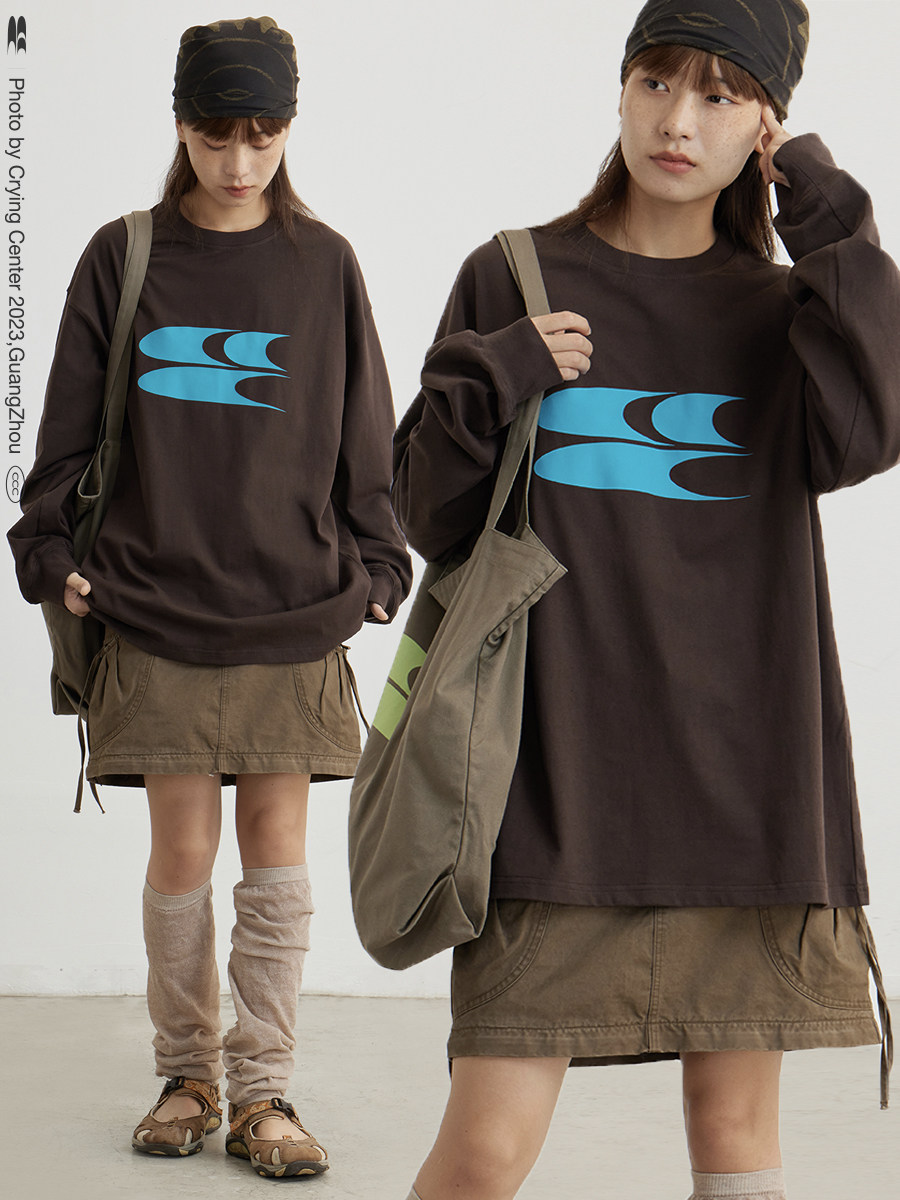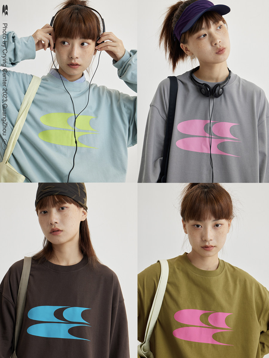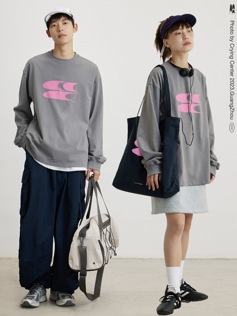 CryingCenter Классический лонгслив с круглым воротником, ткань, с печатью вашего логотипа