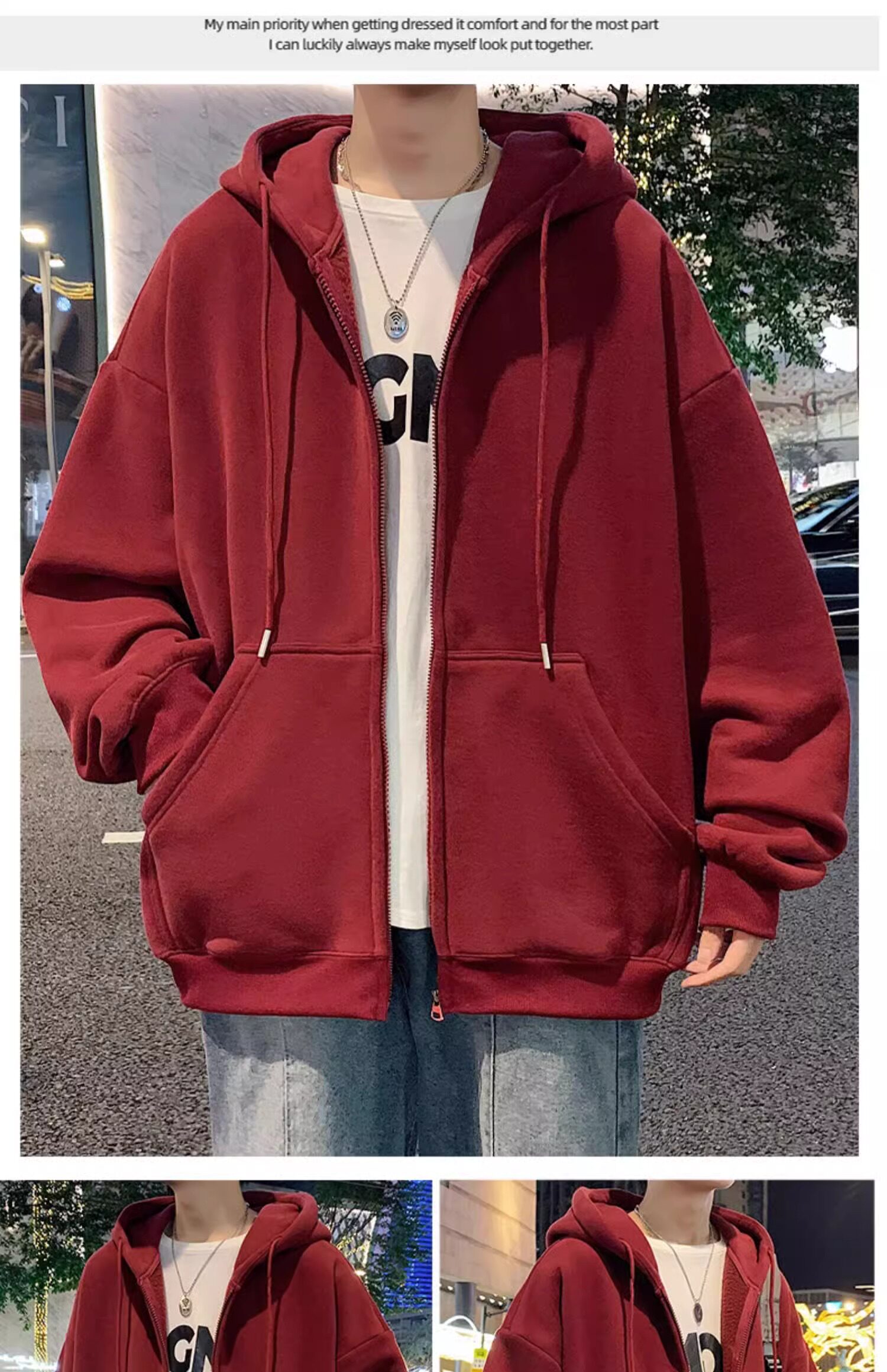 Мужской бордовый шерстяной осенний свитер с капюшоном, универсальный лонгслив для отдыха, куртка
