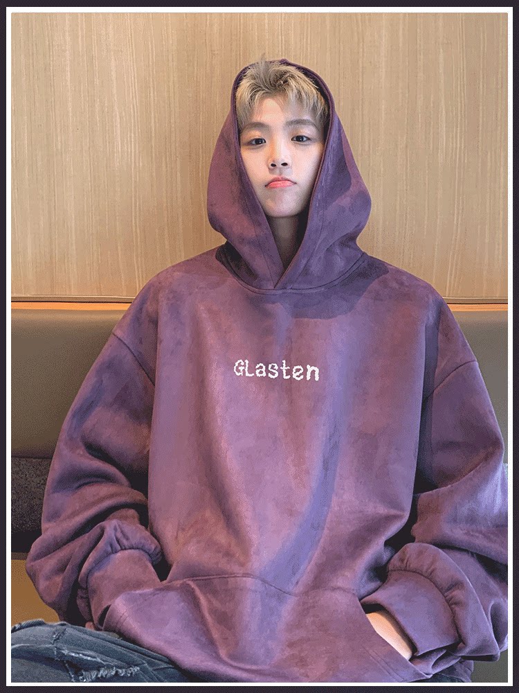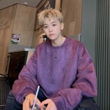 Ретро сиреневая демисезонная толстовка, парная одежда для влюбленных, бархатная куртка, в американском стиле, изысканный стиль, оверсайз