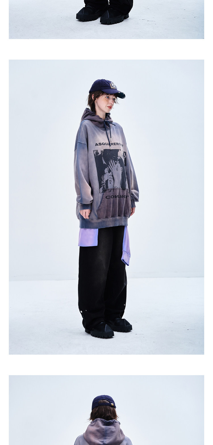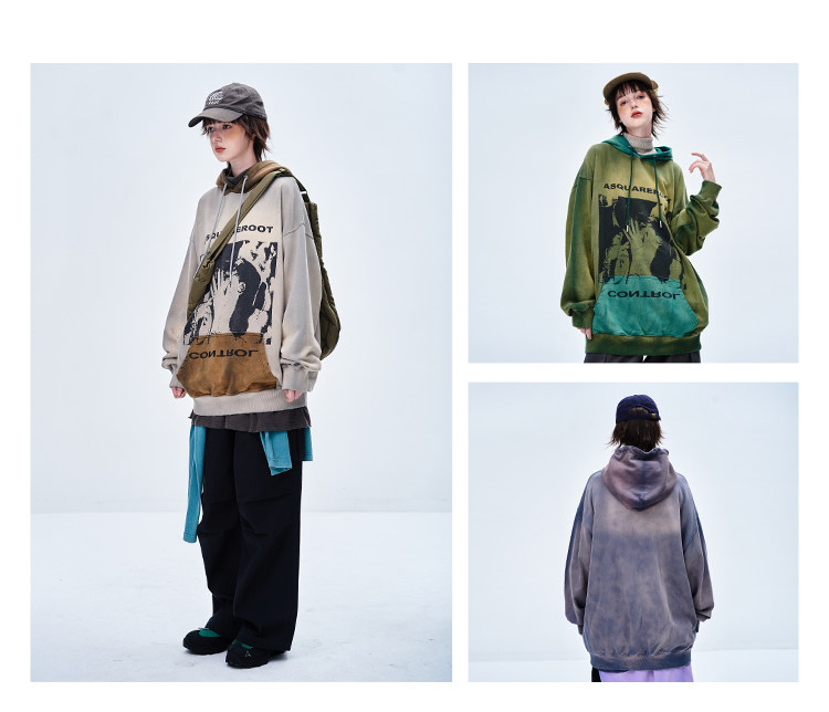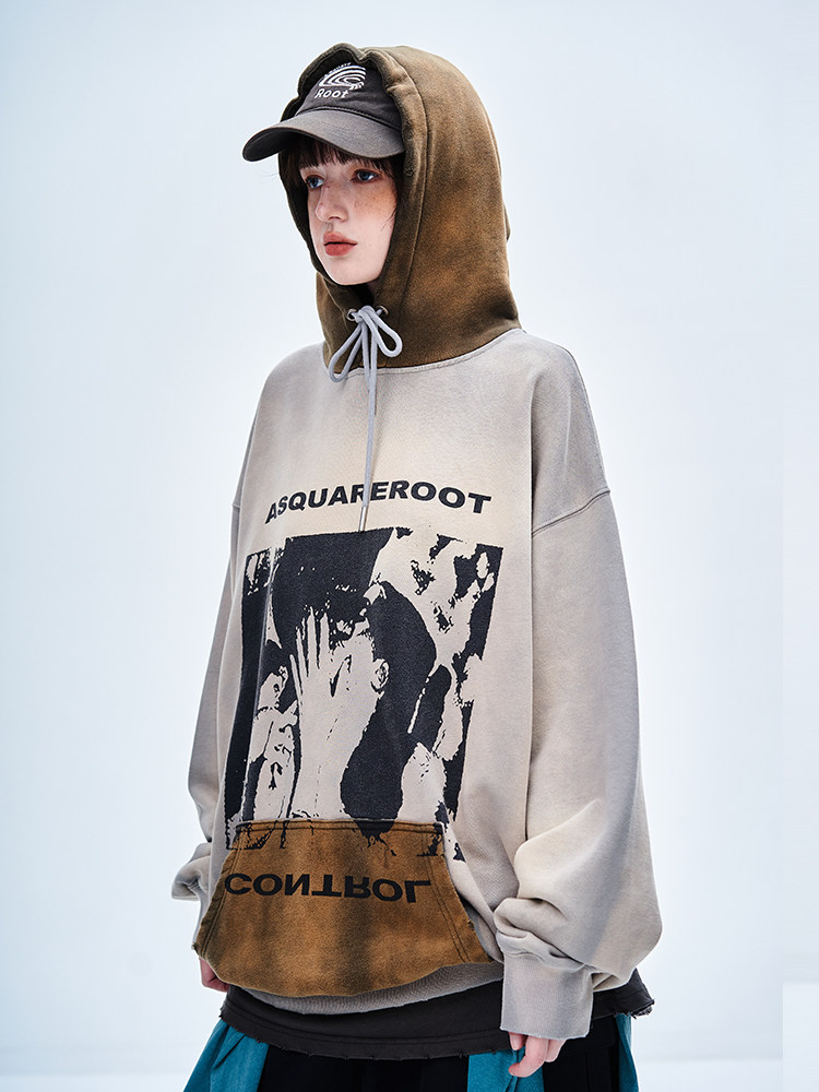 Весенняя толстовка для отдыха подходит для мужчин и женщин, оверсайз, градиент, в американском стиле