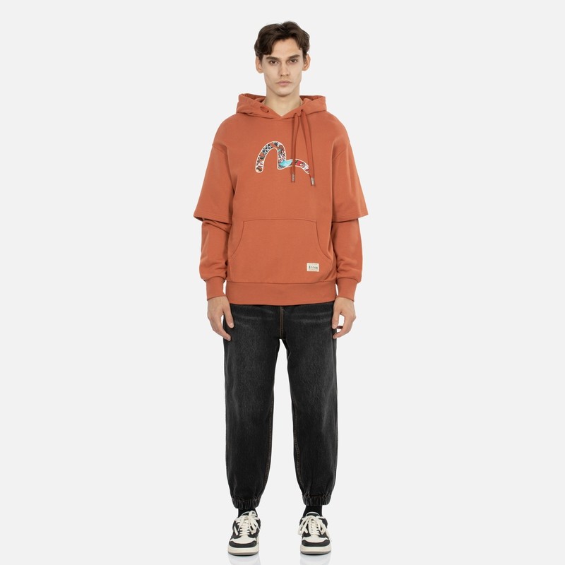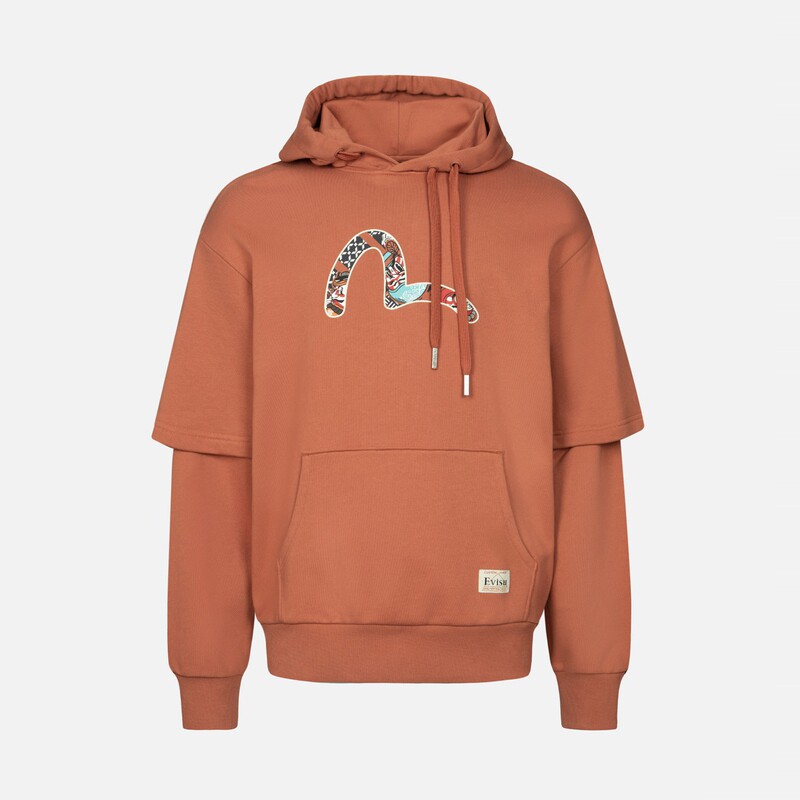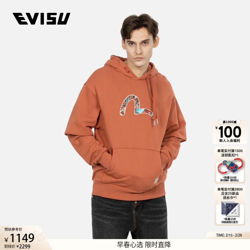 Мужская модная повседневная свободная хлопковая толстовка EVISU с имитацией чайки из двух предметов 2EAHTM3SW1077RXCT