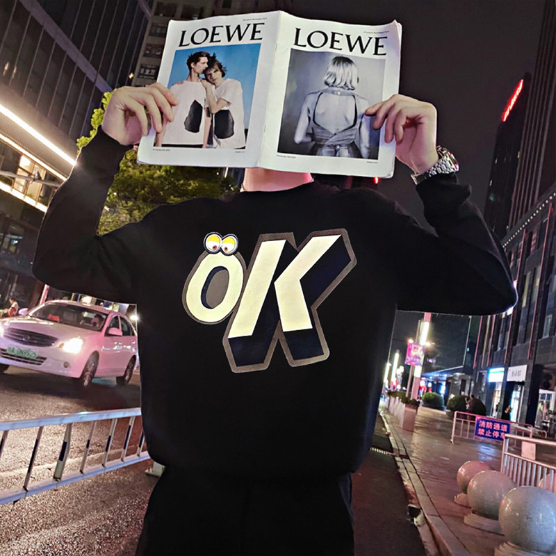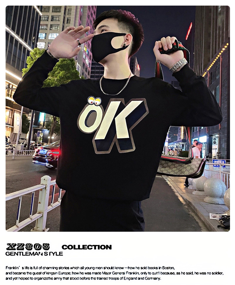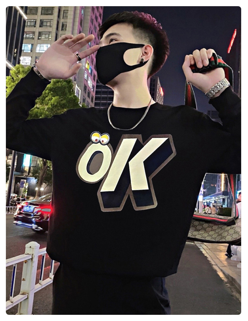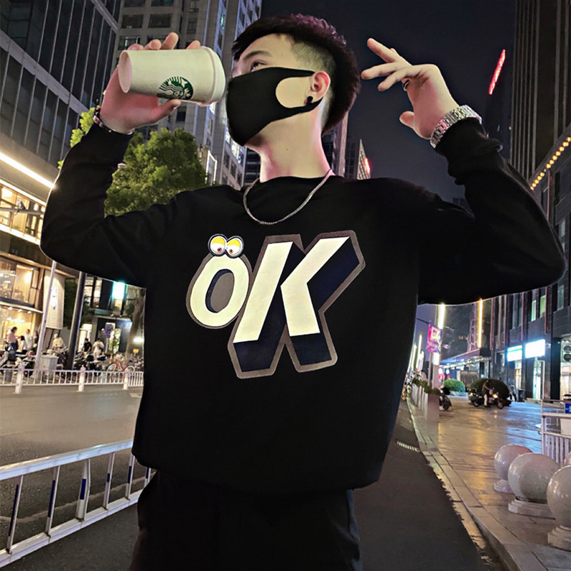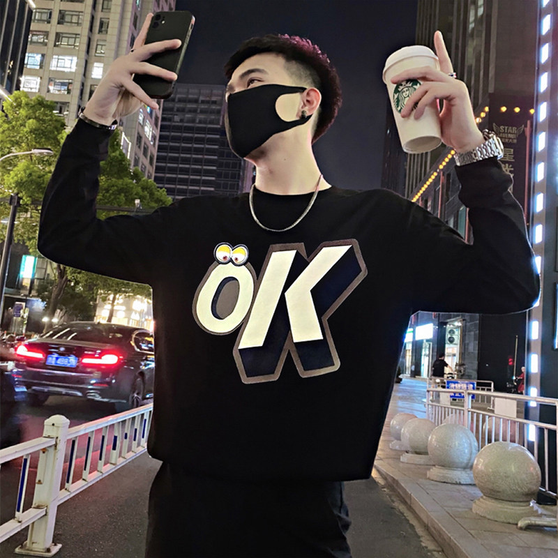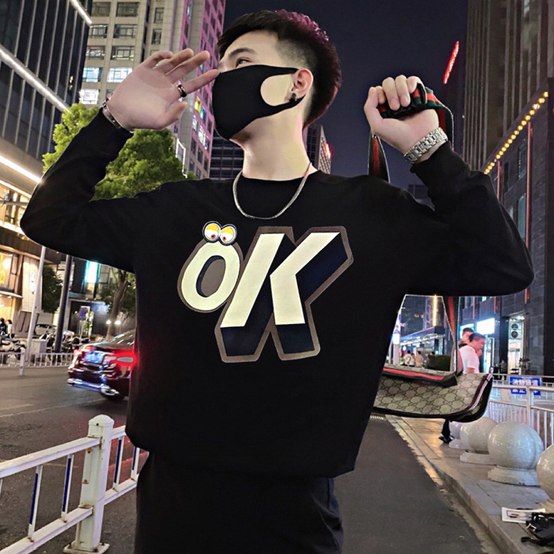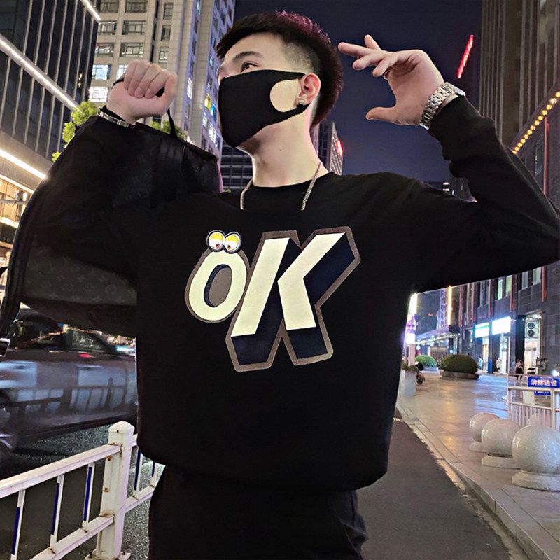 Трендовая толстовка, черная футболка с круглым воротником, мужская осенняя куртка, в корейском стиле