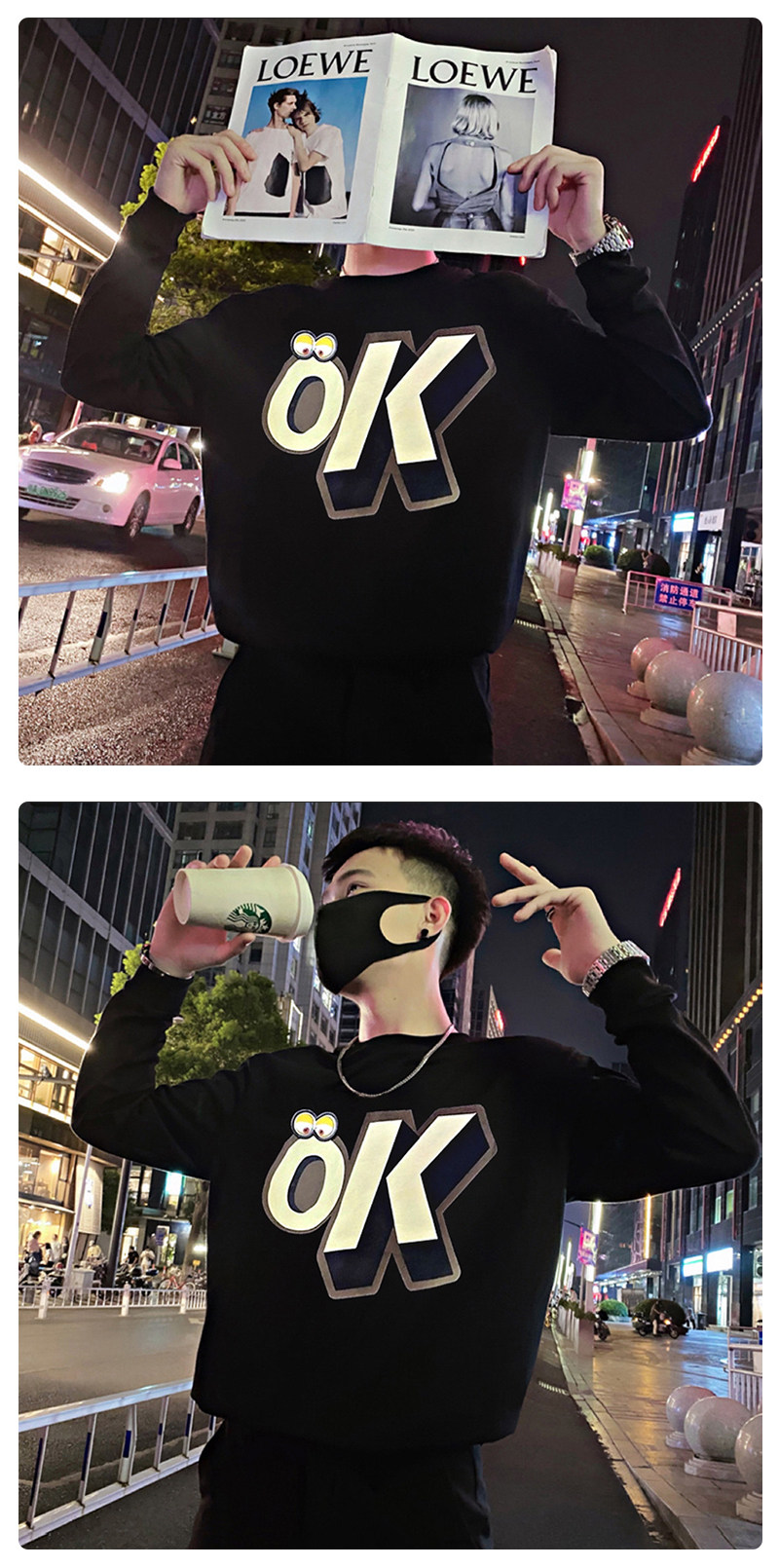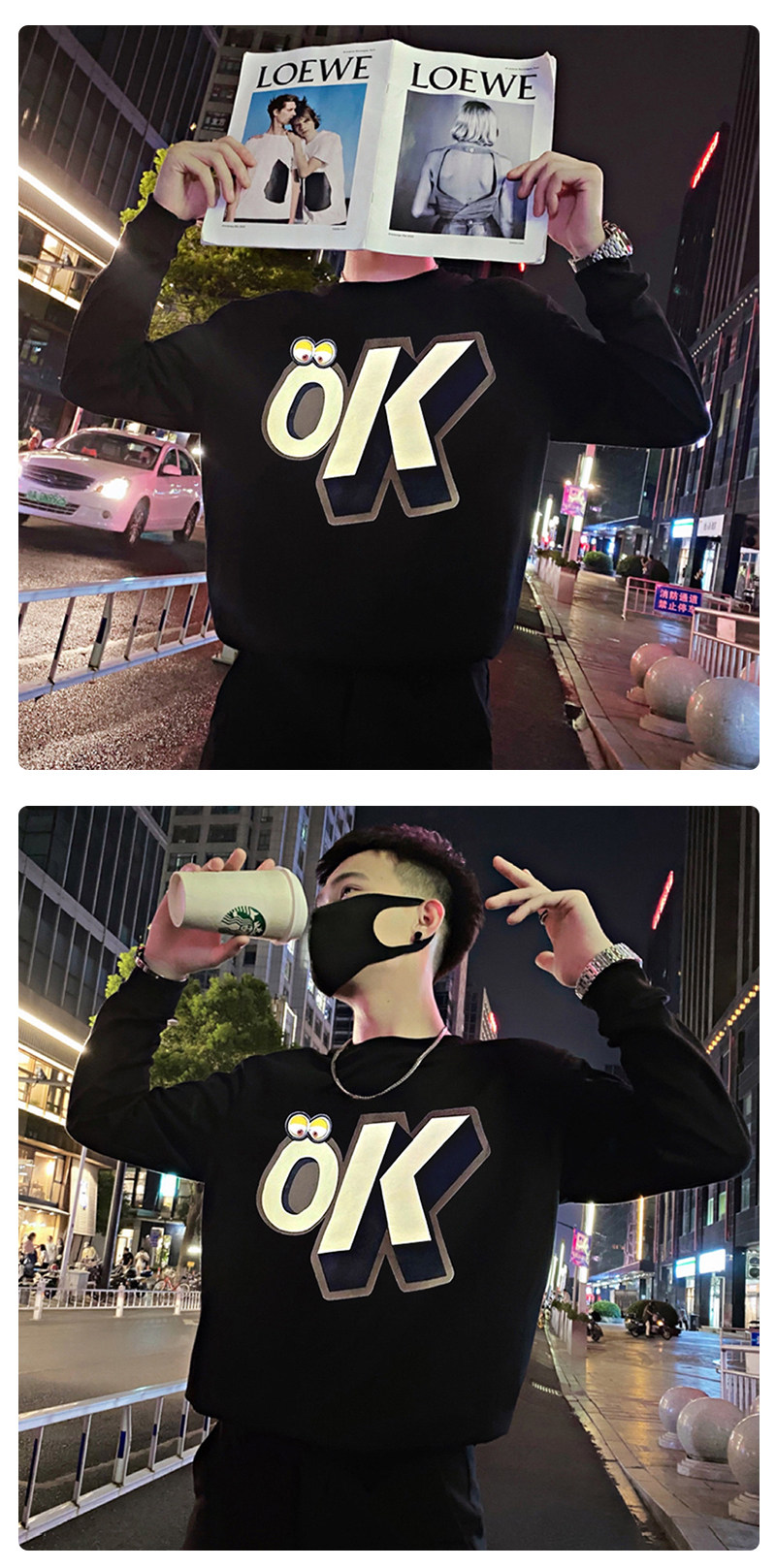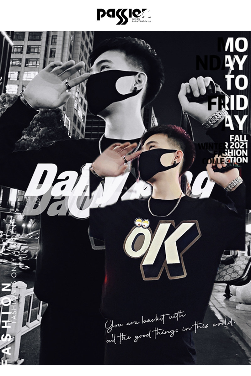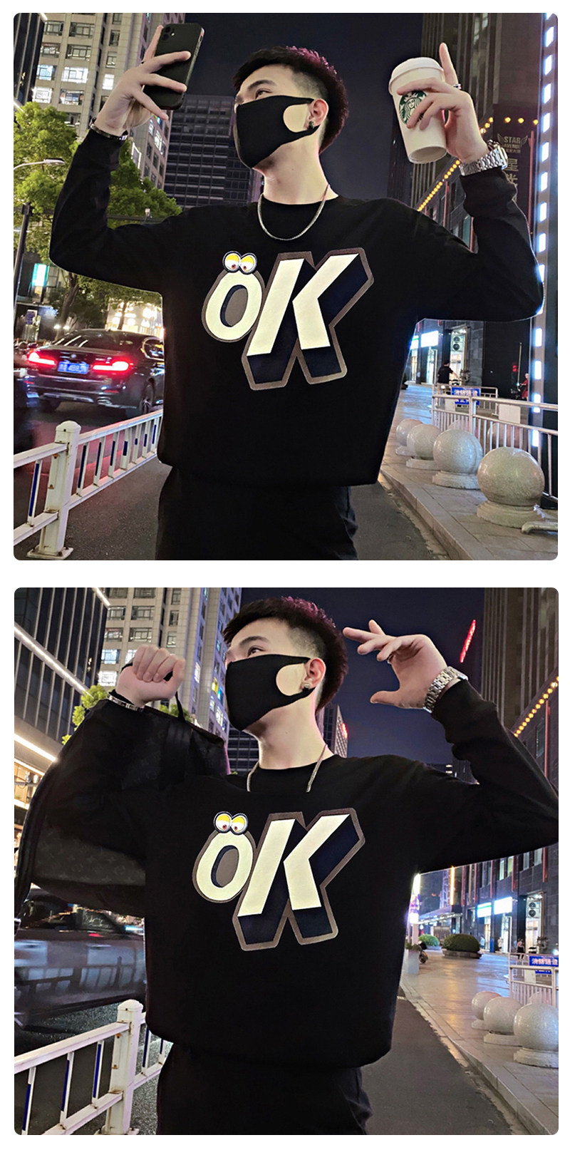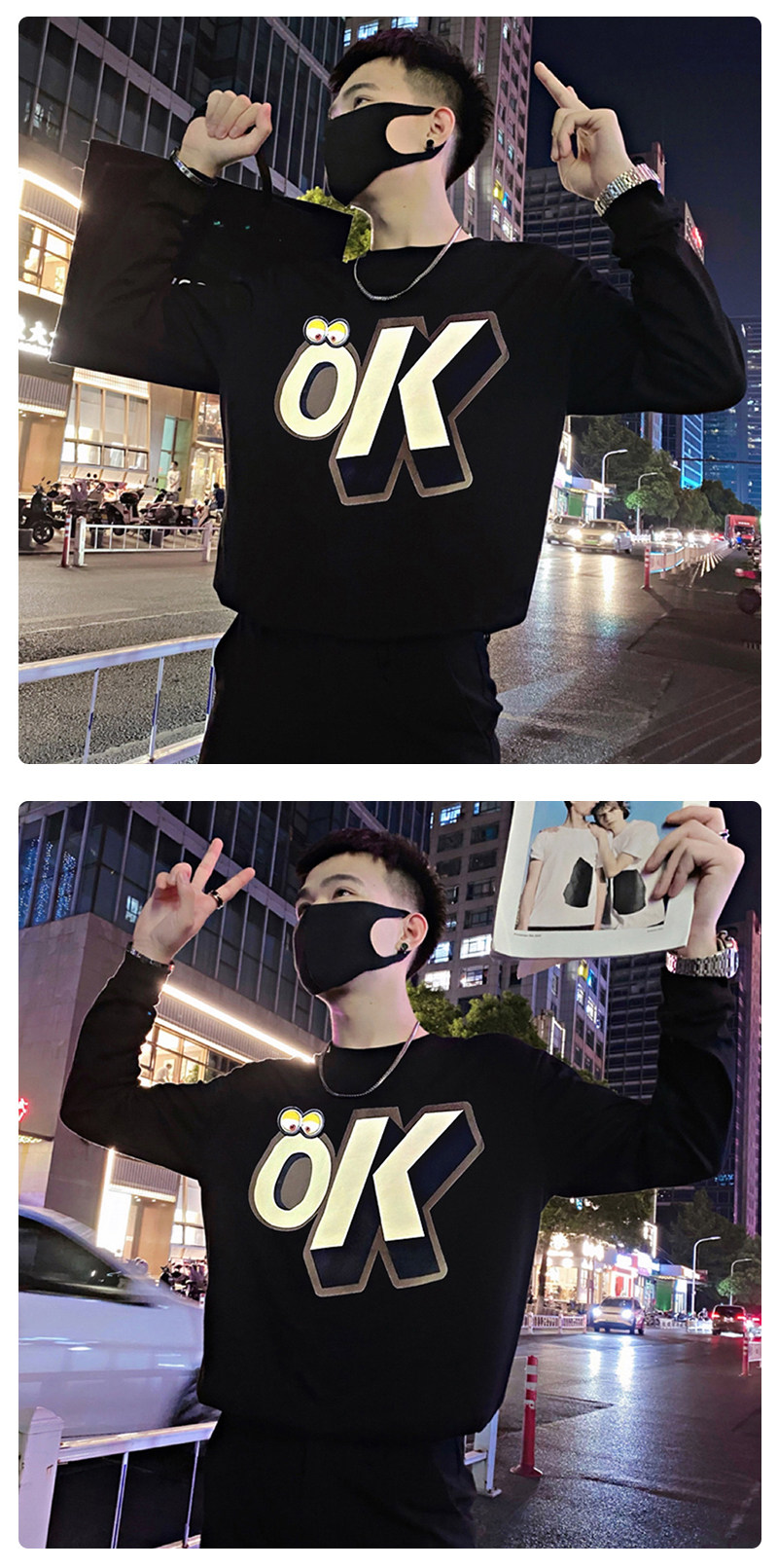 Трендовая толстовка, черная футболка с круглым воротником, мужская осенняя куртка, в корейском стиле