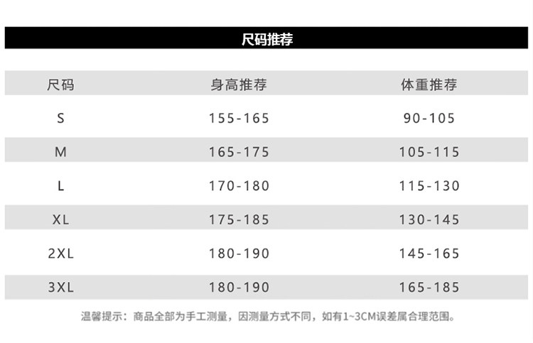 | Размер: | S предложил менее 105 кот, М рекомендуется 105-115 кот, L предложил 115-130 кот, XL рекомендовал 130-145 кот, 2xl Предложение 145-165 Catties, 3xl Предложение 165-185 Catties |