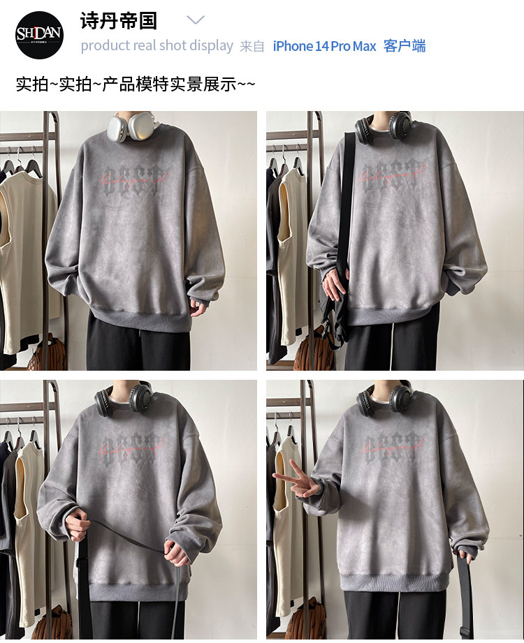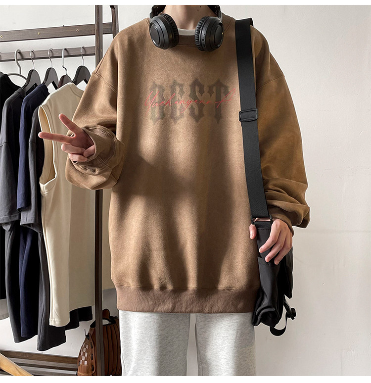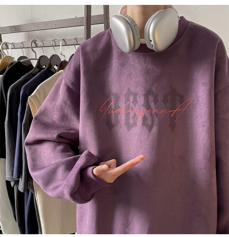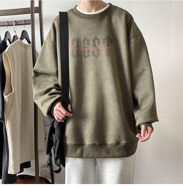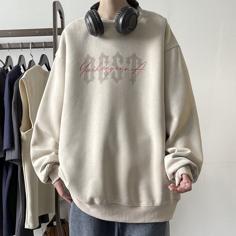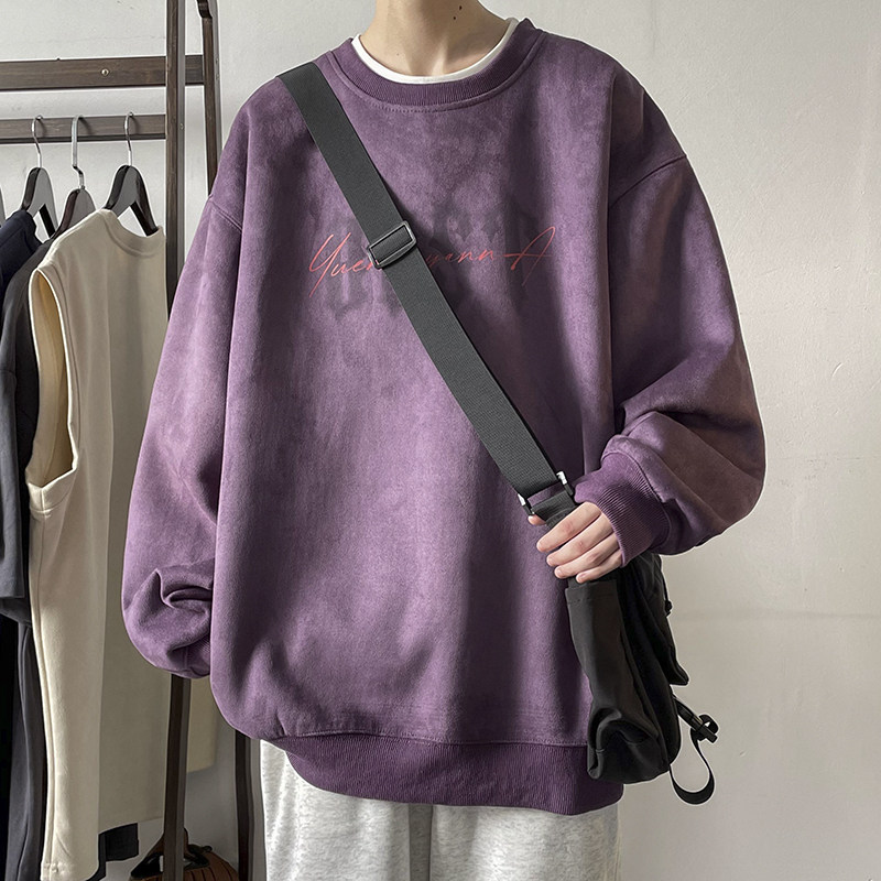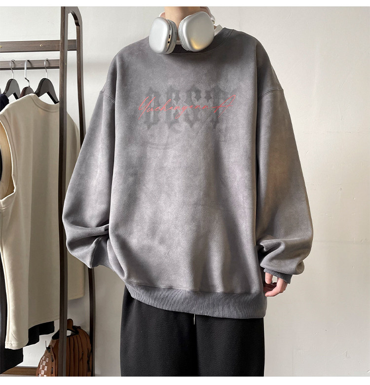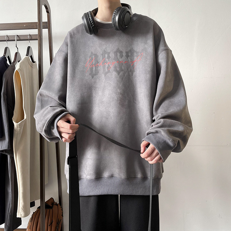 Мужская бархатная осенняя толстовка, лонгслив с круглым воротником, куртка, в американском стиле