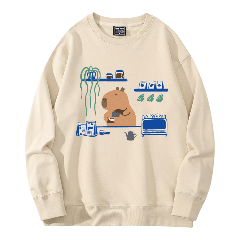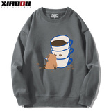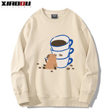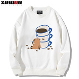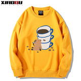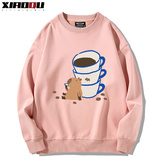 Милый кофейный мультяшный демисезонный свитшот подходит для мужчин и женщин