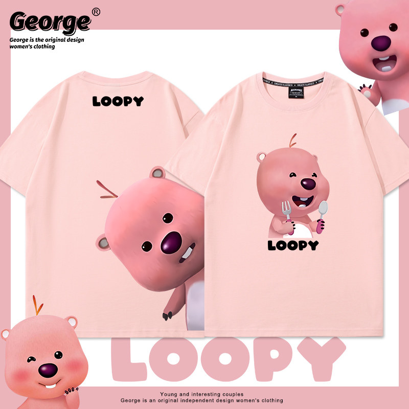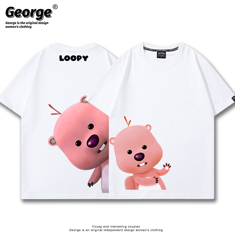 Футболка, мультяшная толстовка подходит для мужчин и женщин, короткий рукав, свободный крой