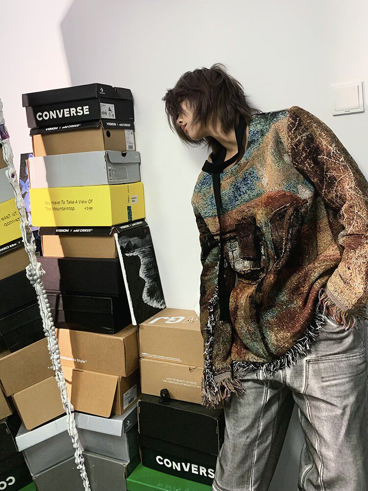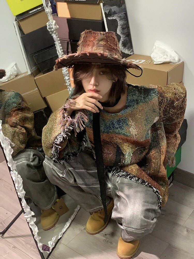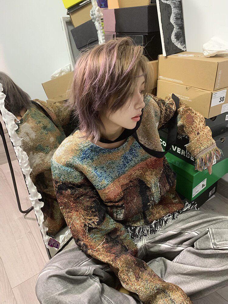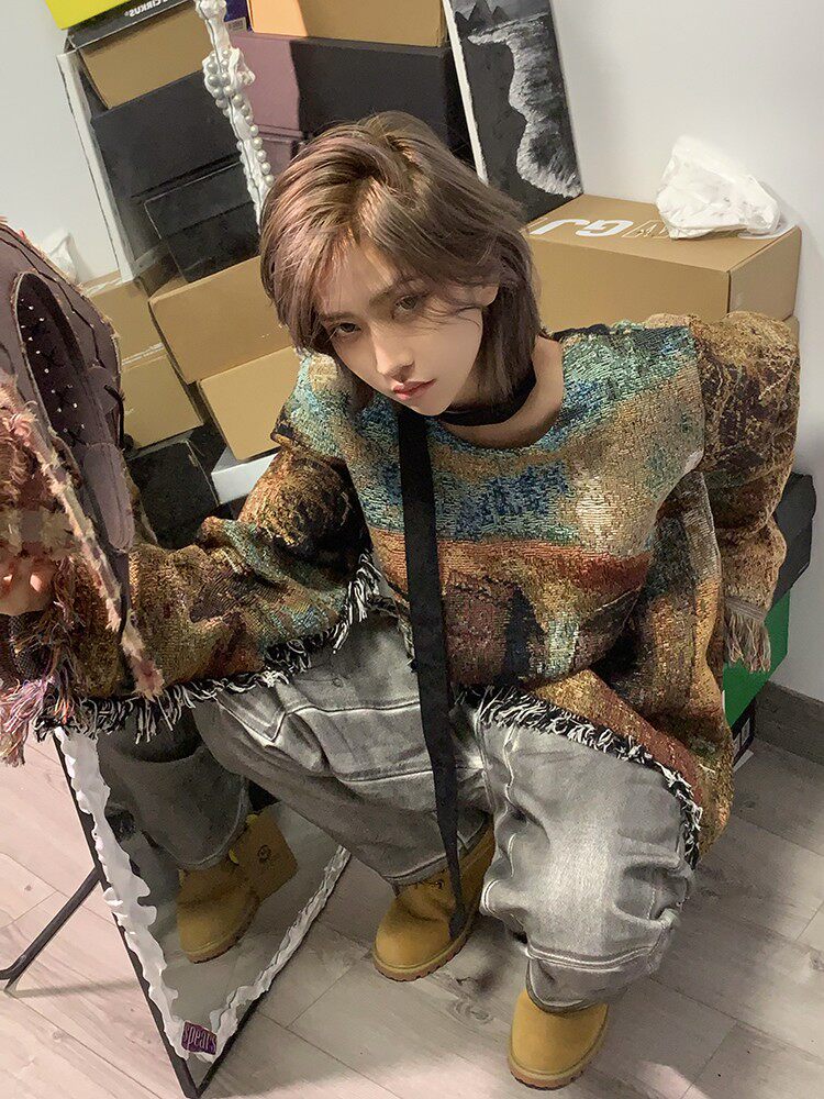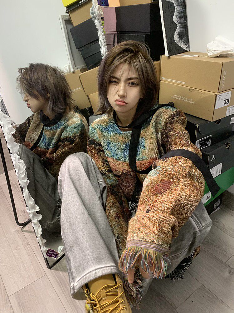 Без меня/Мэн Гинва Тяссель ретро Старомодный вязаный пуловер Мужчины и женщины свободны от повседневных толстовков