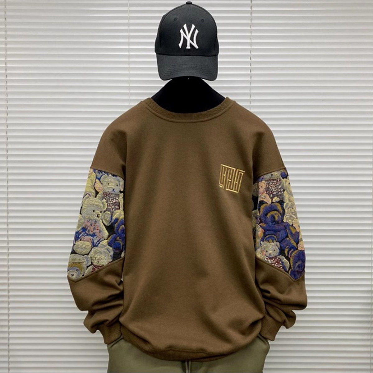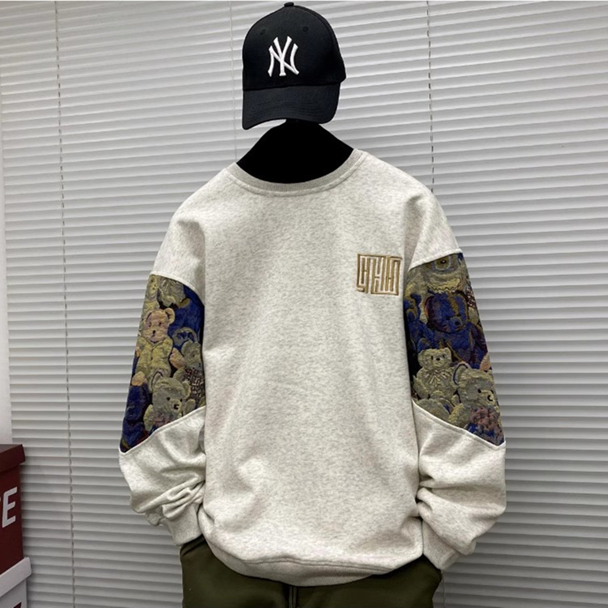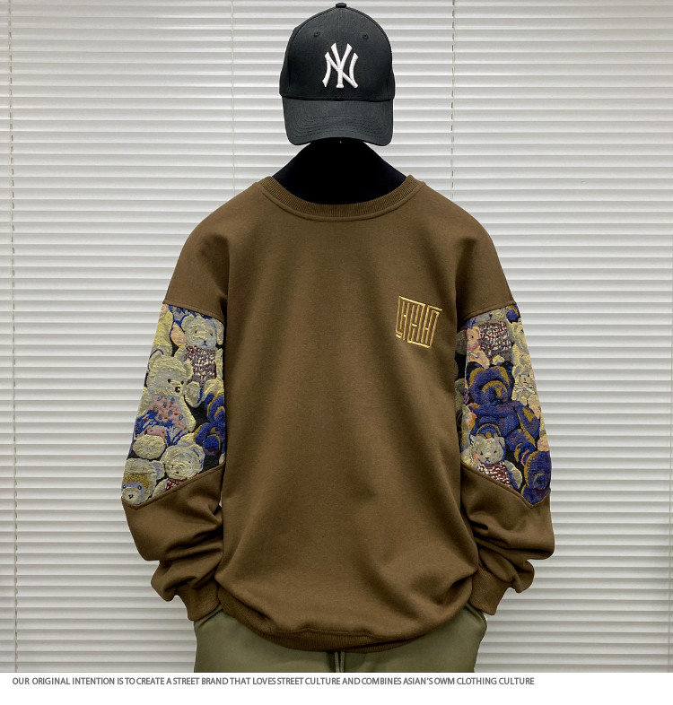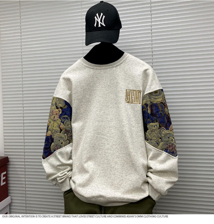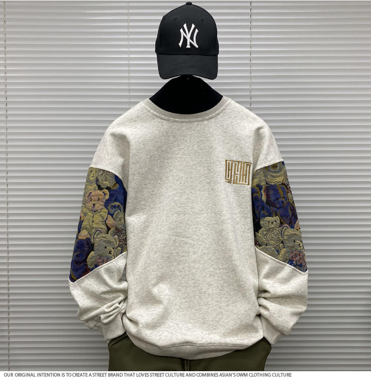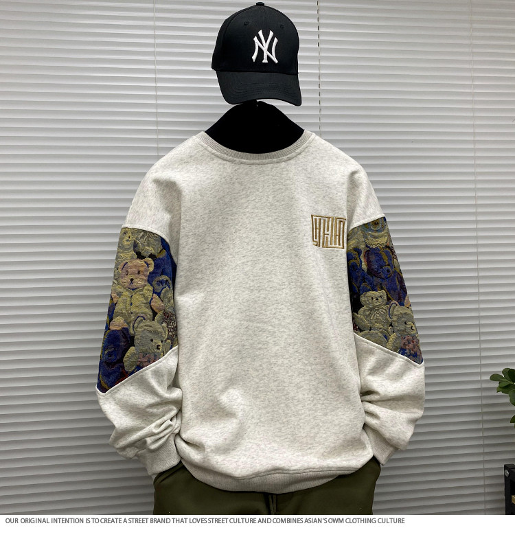 Мужской осенний демисезонный лонгслив, футболка, с медвежатами, с вышивкой, размер, подходит для подростков