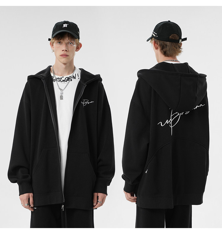 BJHG Трикотажное платье, толстовка с капюшоном, демисезонная куртка, ретро кардиган, балахон, в американском стиле, с вышивкой, для влюбленных