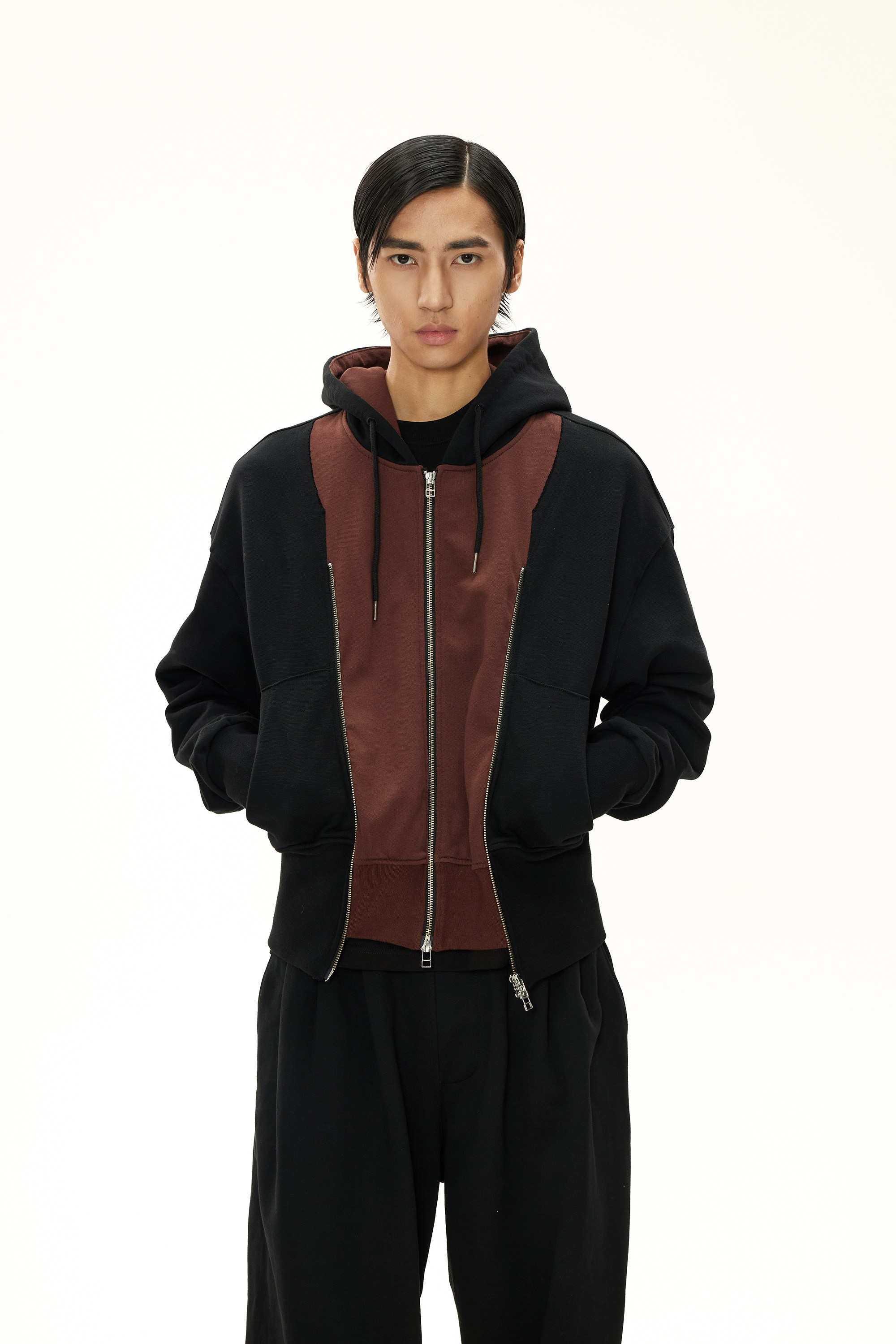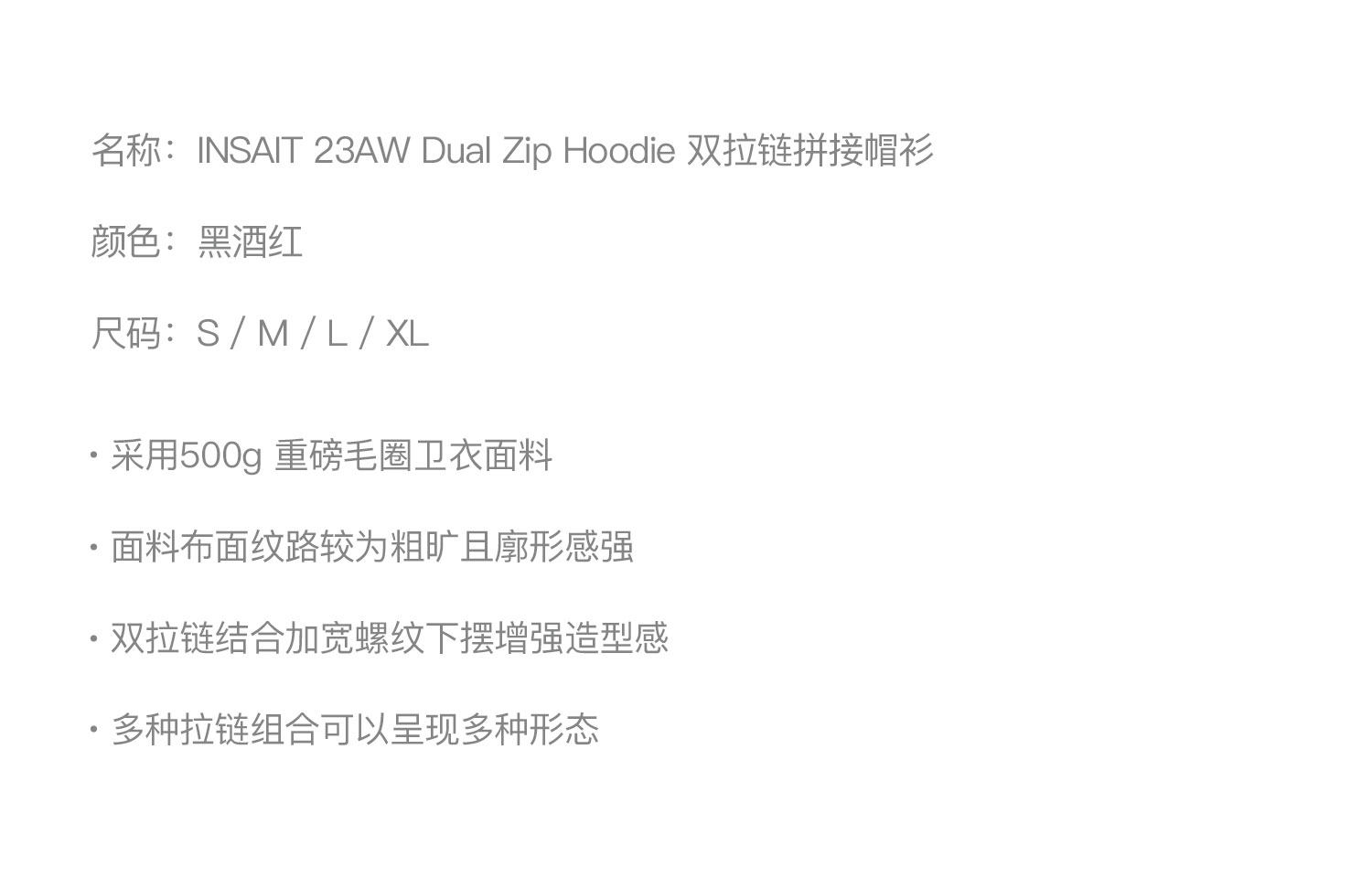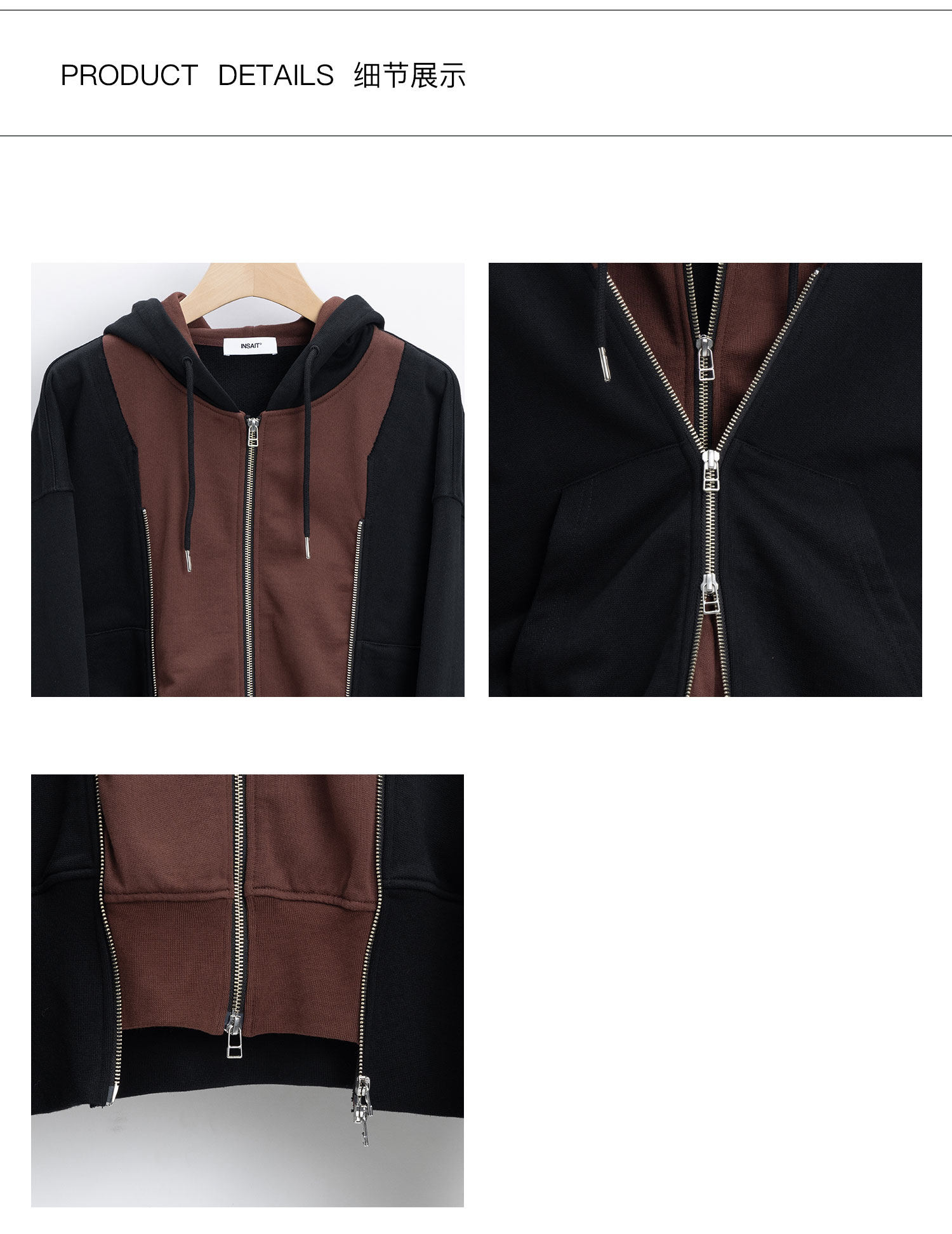 INSAIT 23Aw Двойная Zip Hoodie Double -Zipper Stitching Hoodie