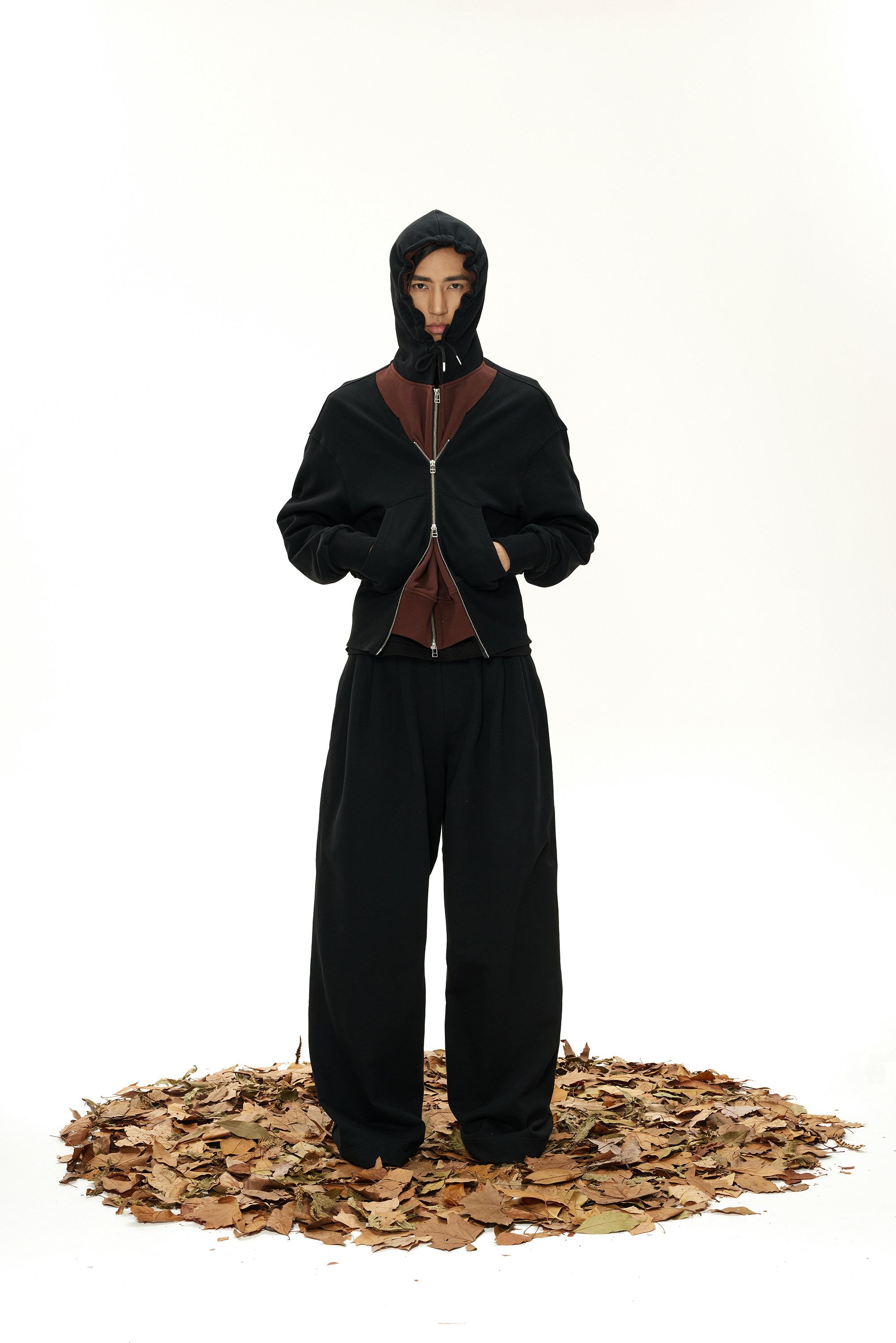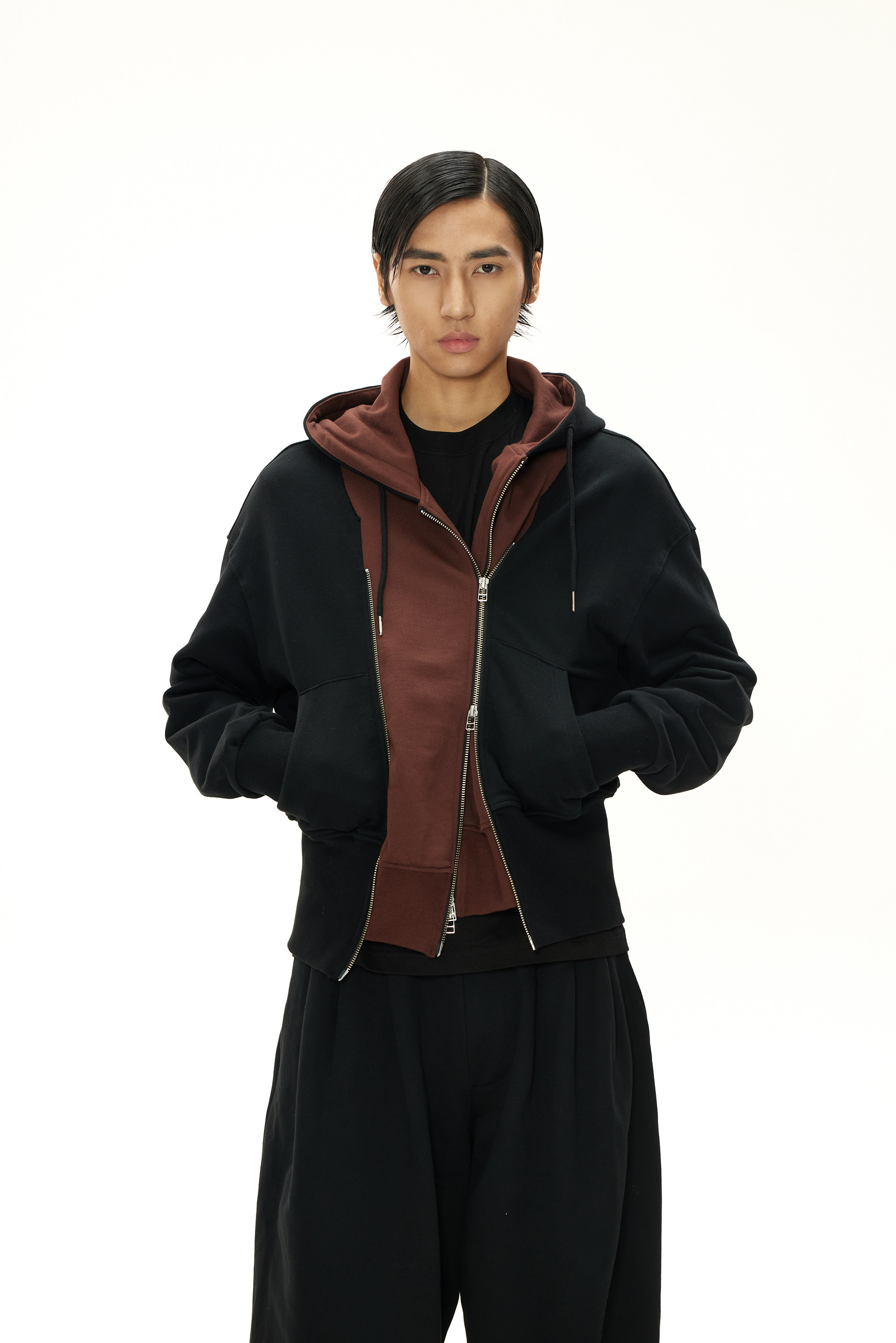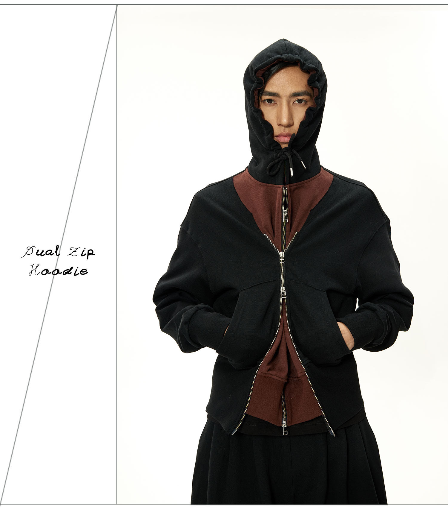 INSAIT 23Aw Двойная Zip Hoodie Double -Zipper Stitching Hoodie