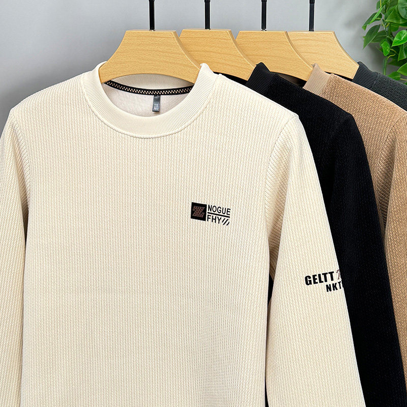 Утепленный свитшот с круглым воротником, бархатный лонгслив, зимняя базовая приятная телу футболка