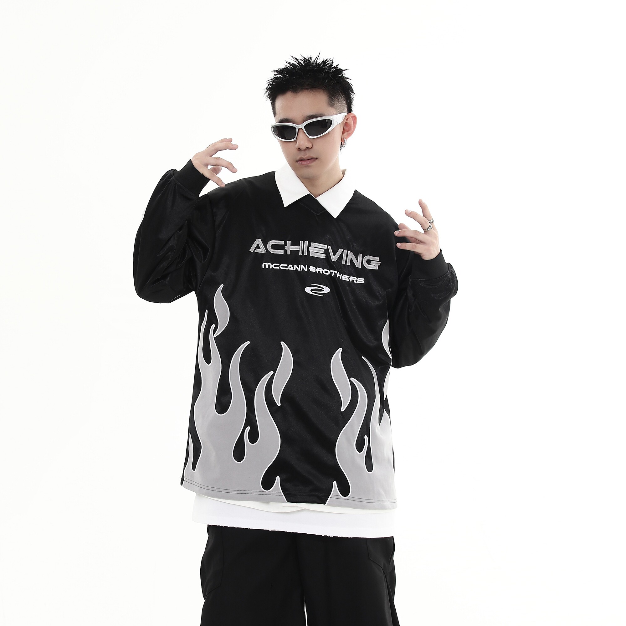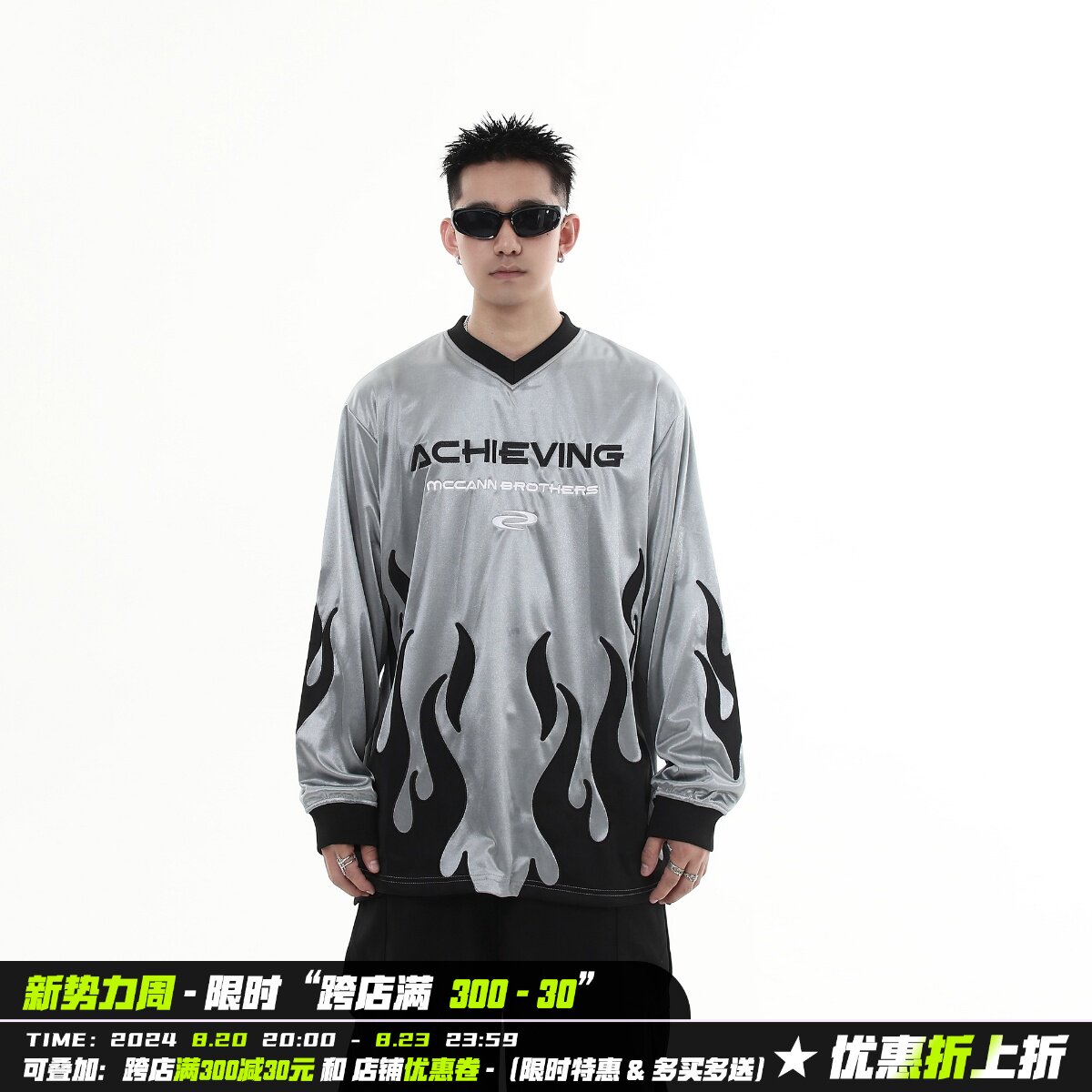 Осенний свитшот, футбольная форма, лонгслив, в американском стиле, V-образный вырез, с вышивкой