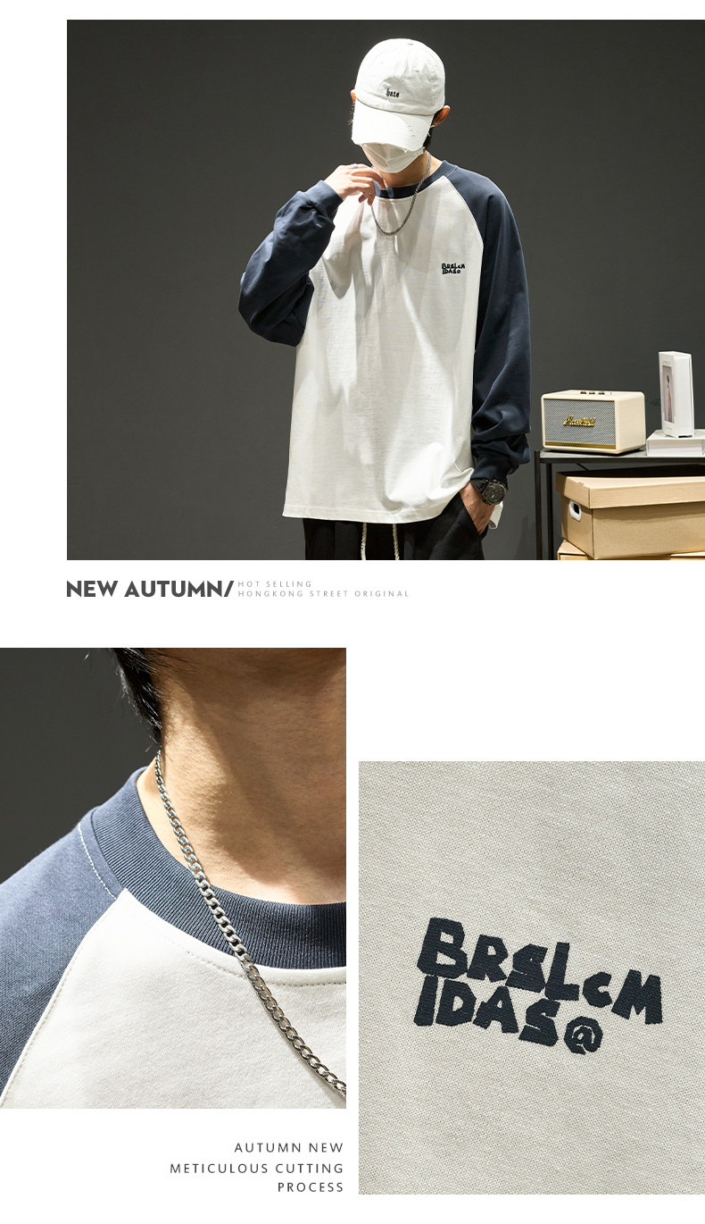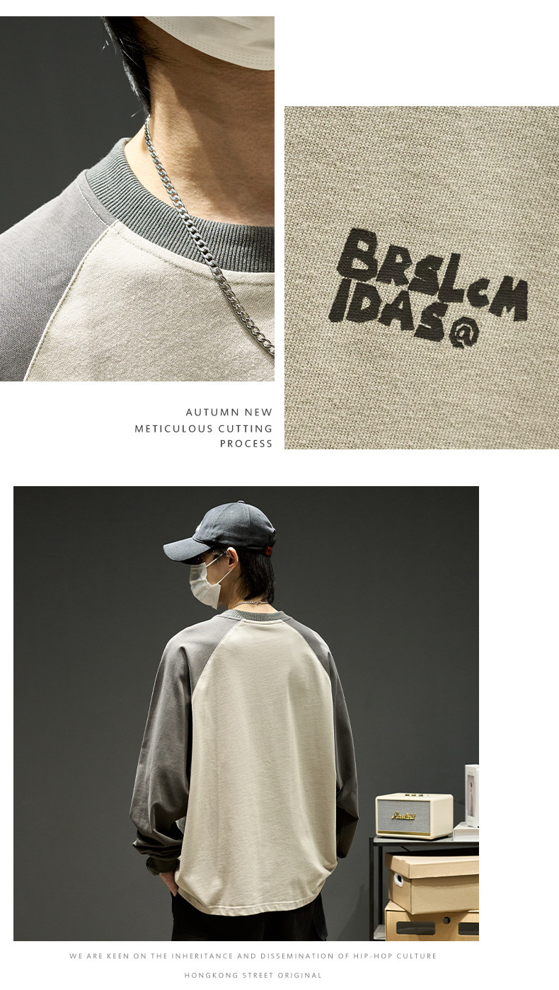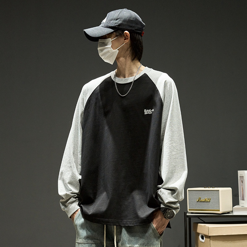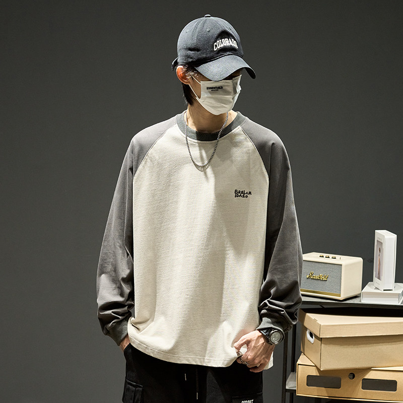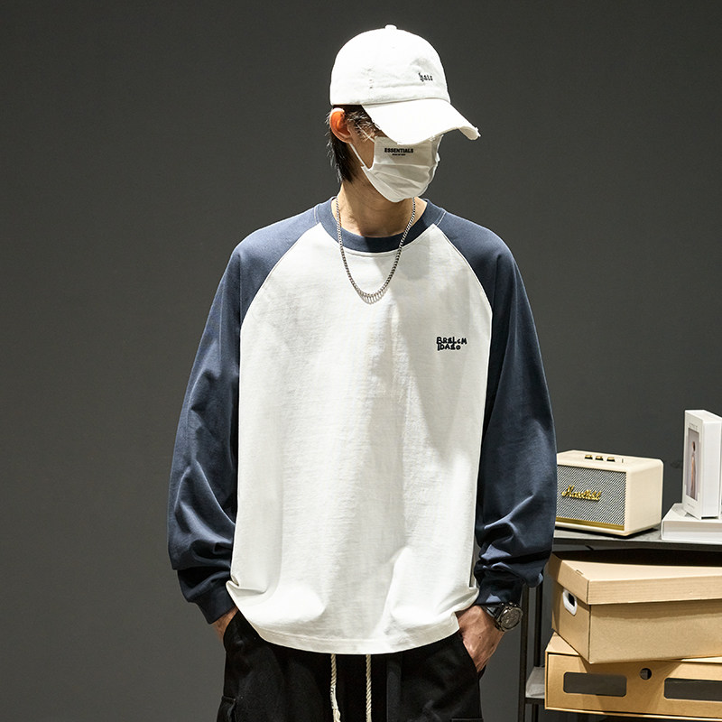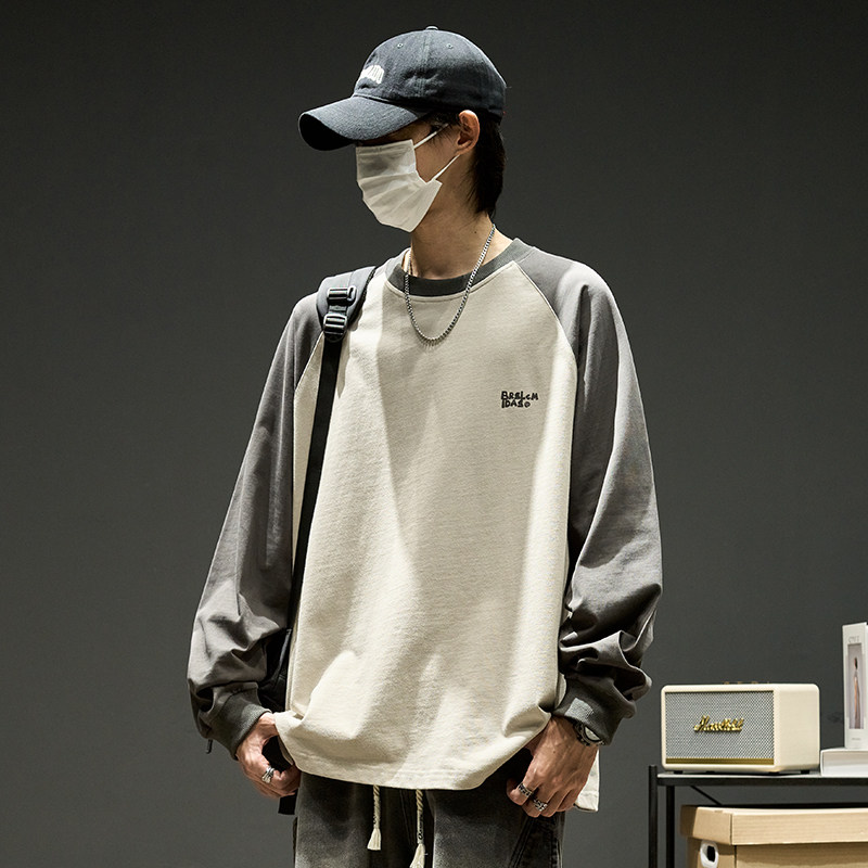 Хлопковый лонгслив, футболка, рубашка с круглым воротником, осенняя толстовка, в американском стиле