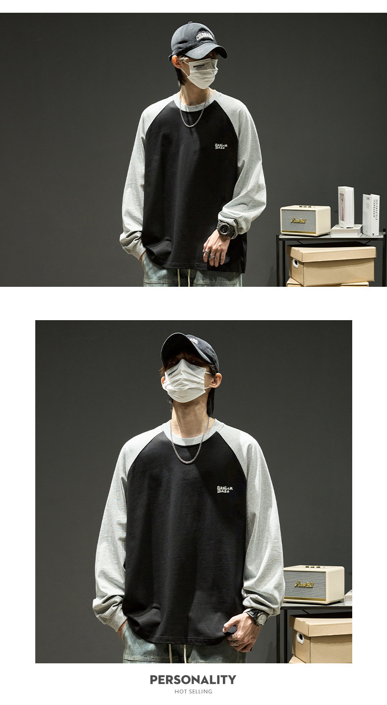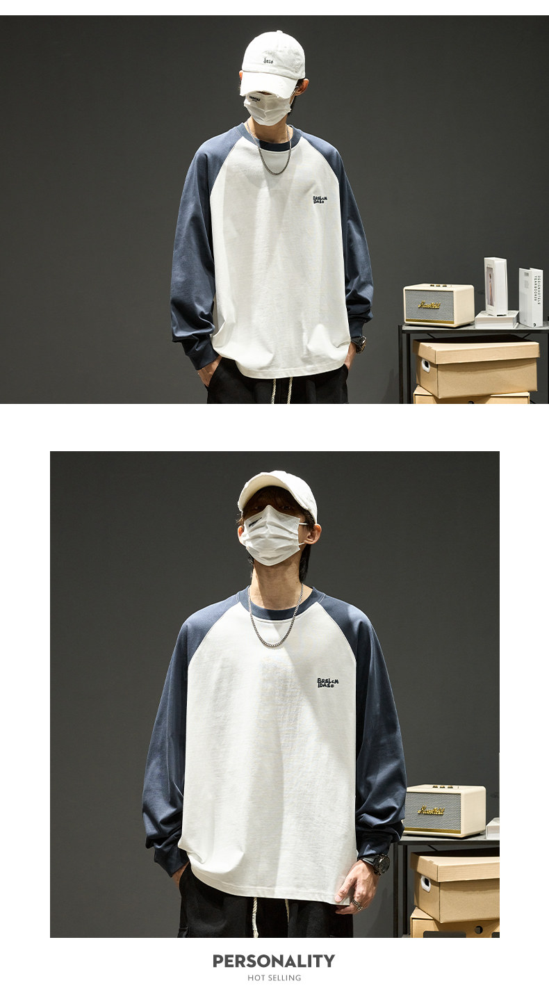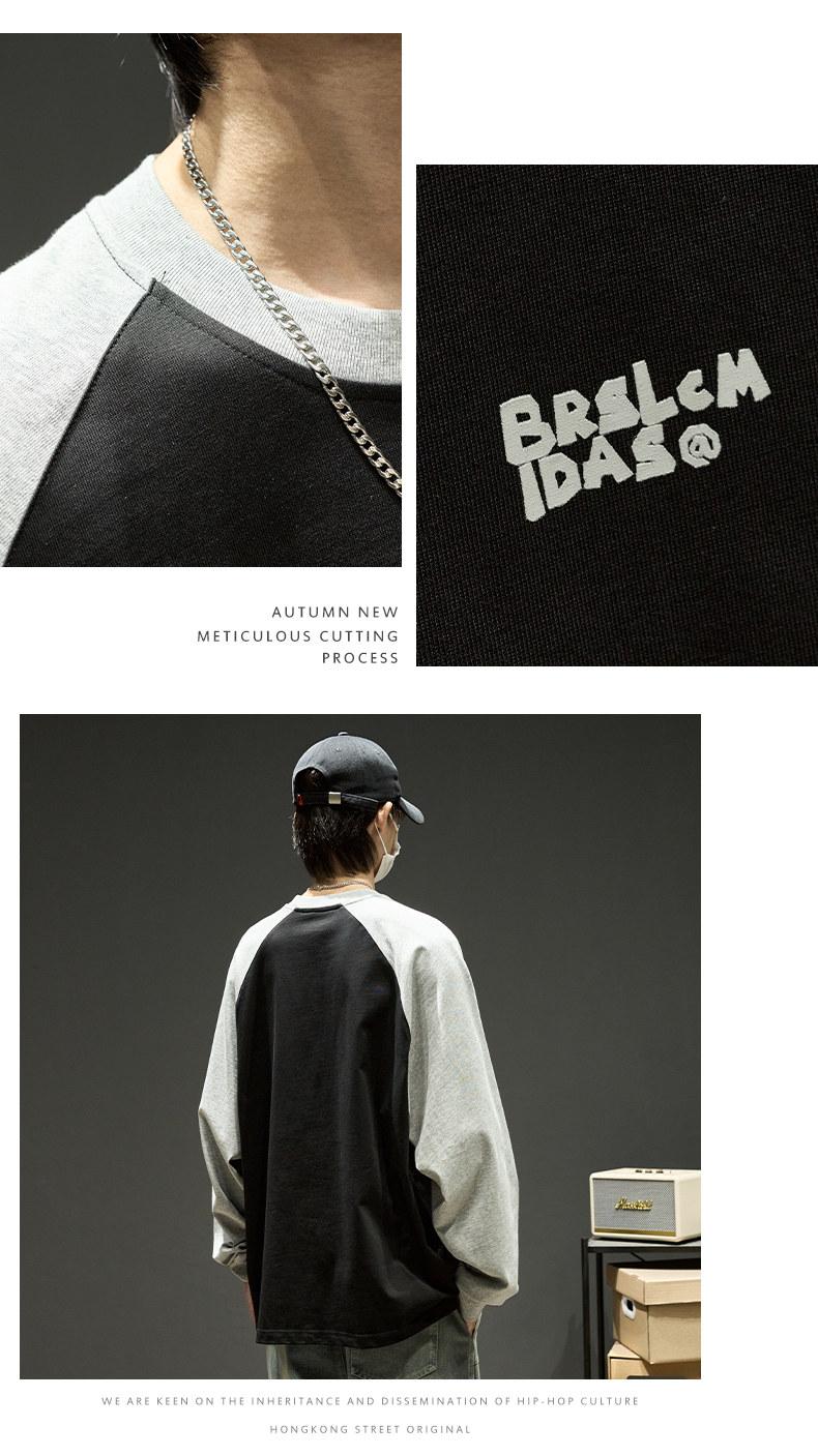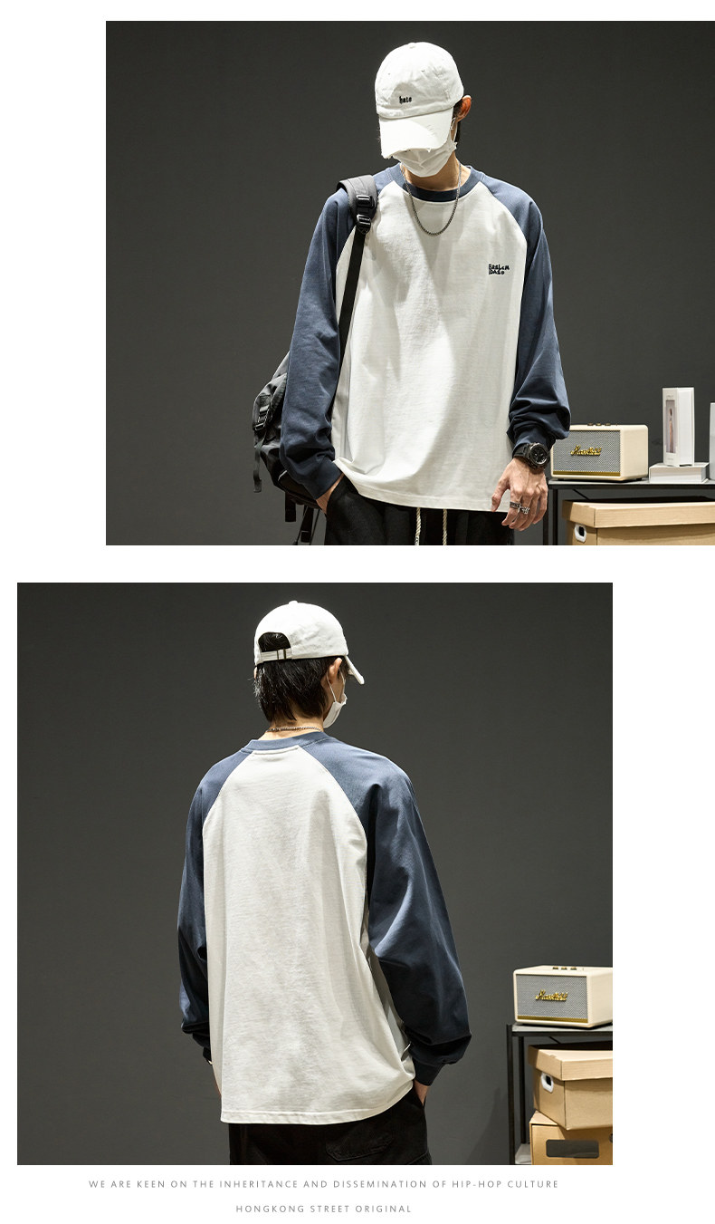 Хлопковый лонгслив, футболка, рубашка с круглым воротником, осенняя толстовка, в американском стиле