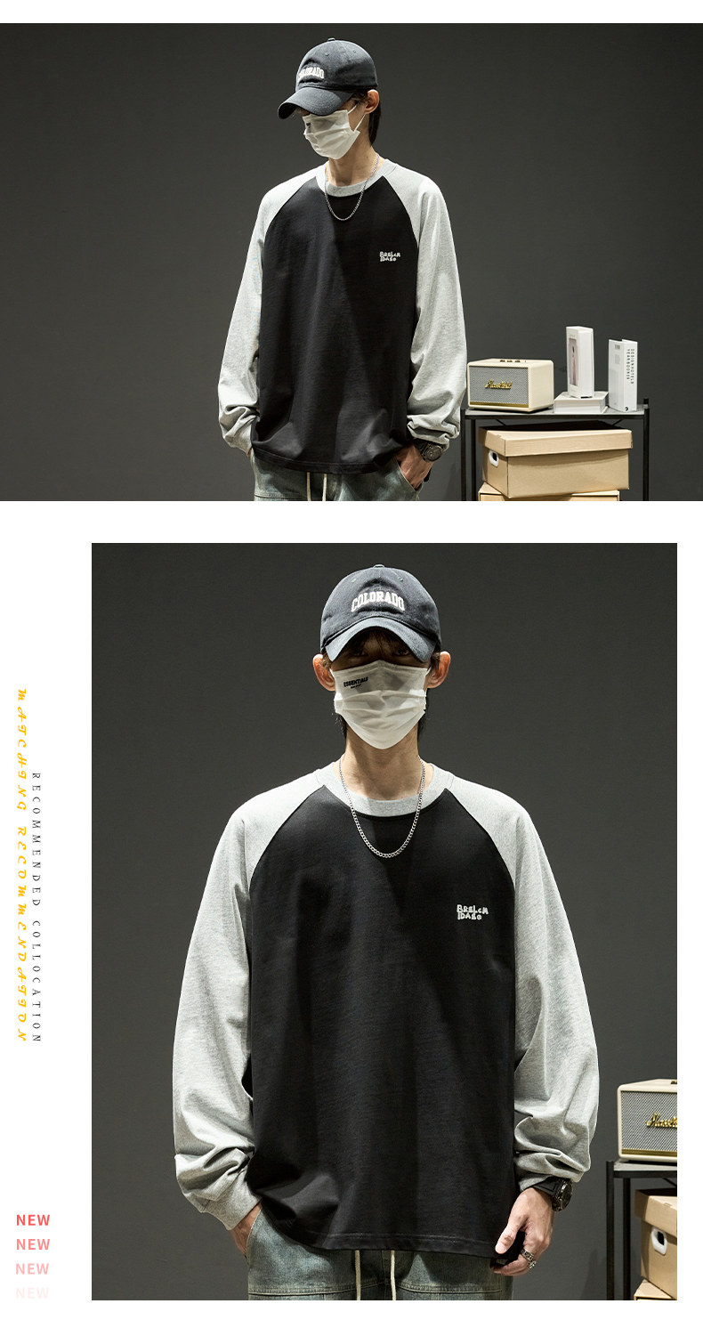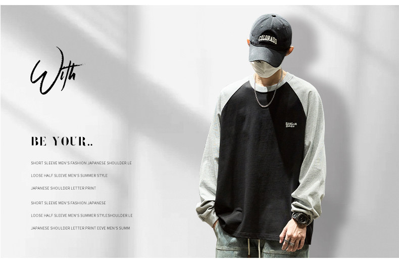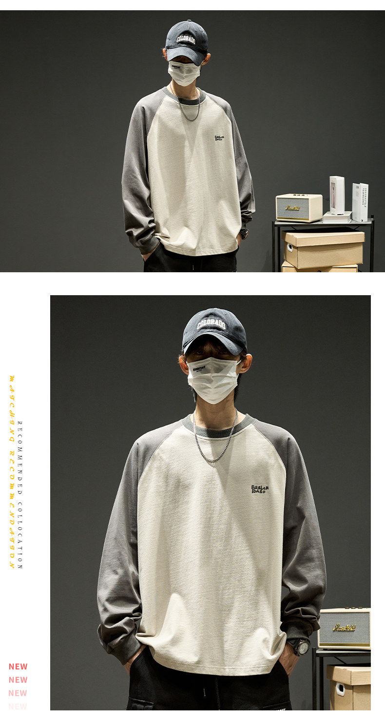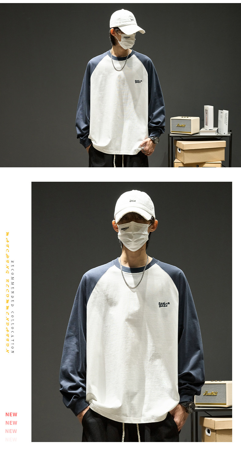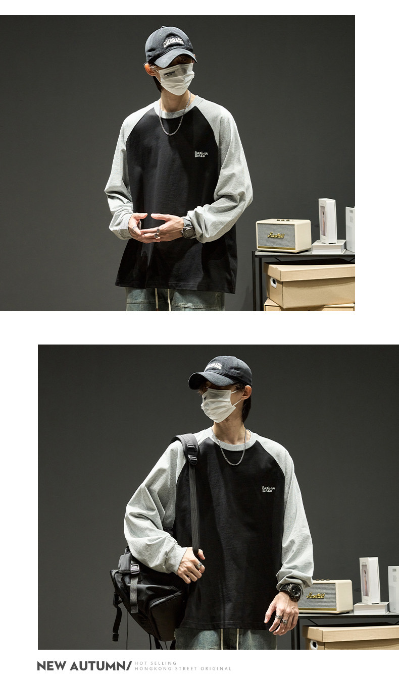 Хлопковый лонгслив, футболка, рубашка с круглым воротником, осенняя толстовка, в американском стиле