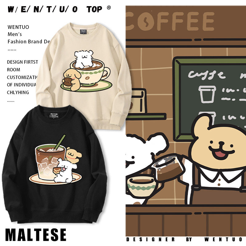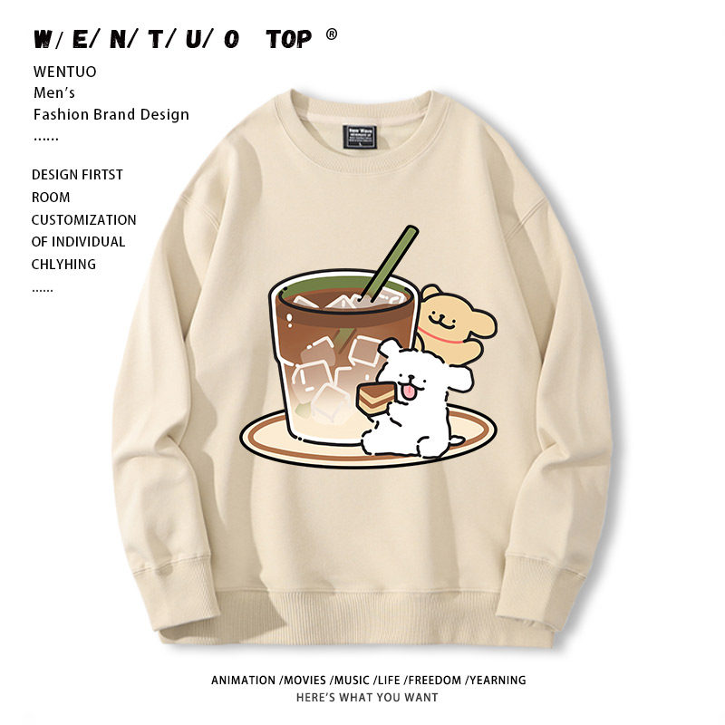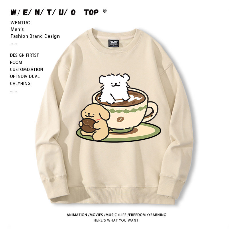 Tide, мультяшный кофейный утепленный свитшот подходит для мужчин и женщин для школьников и студентов