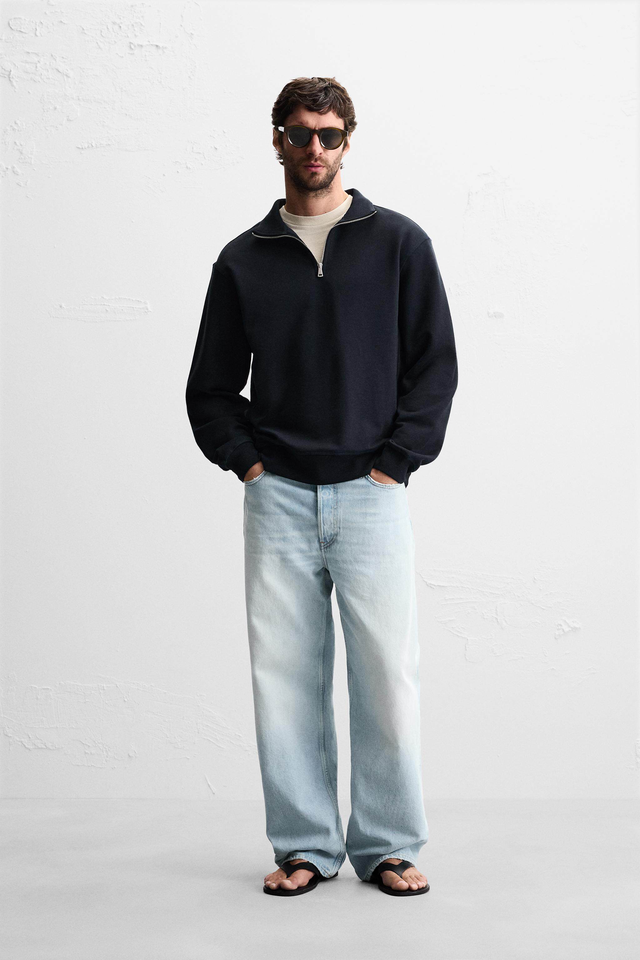 ZARA Осенние новинки 2025, мужская базовая тонкая прямая толстовка с половиной молнии 6462311 401