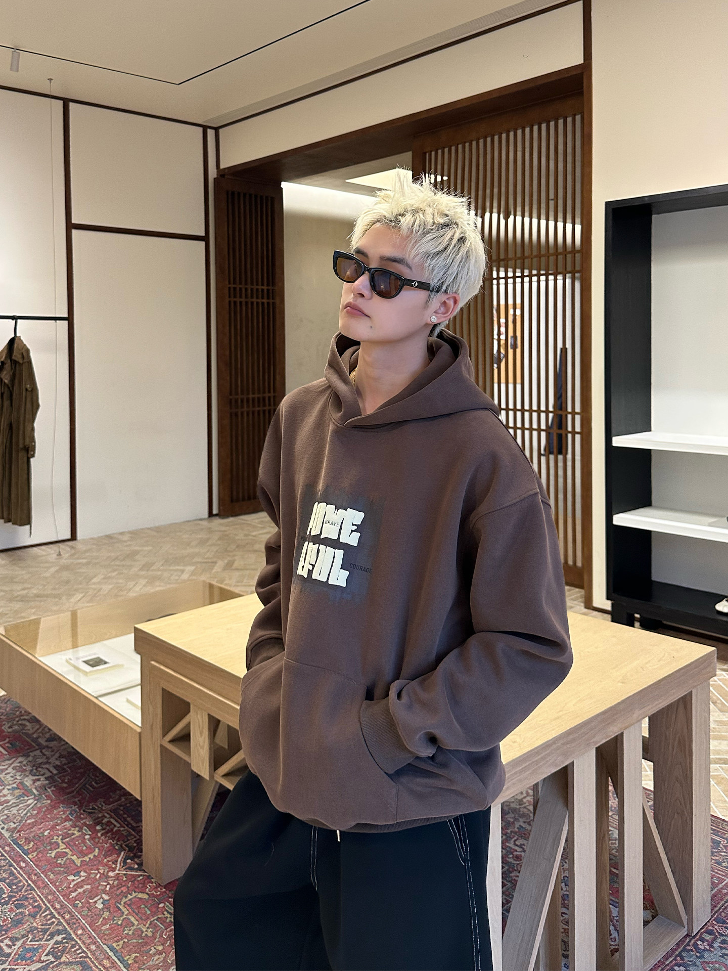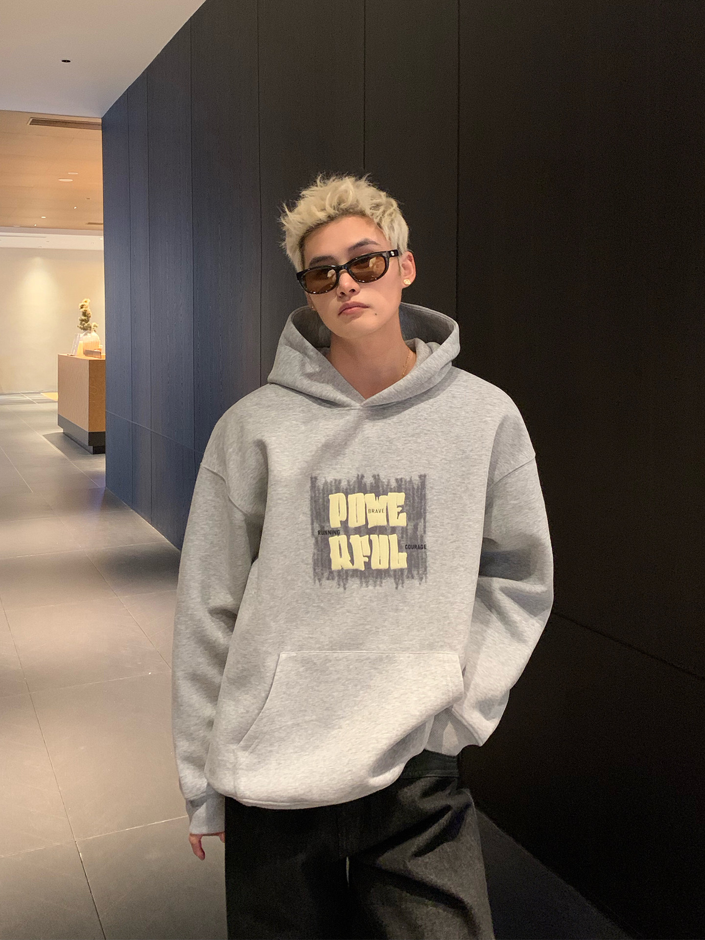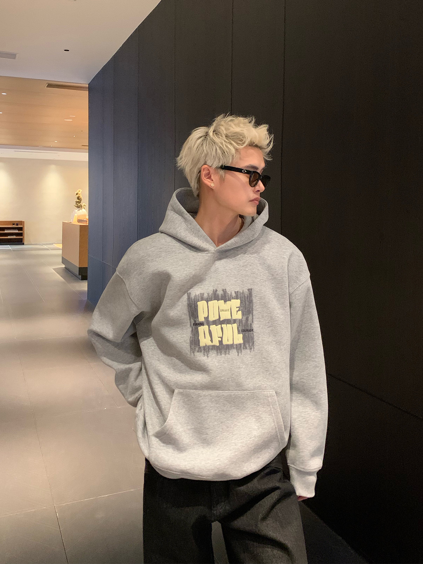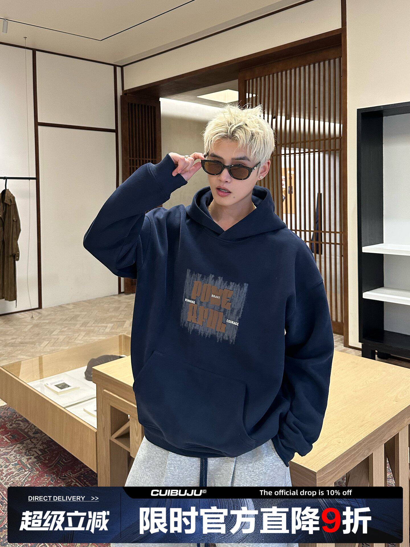 Cuibuju Корейская простая толстовка с капюшоном и объемным принтом из пенопласта 420 г, повседневная толстовка с капюшоном для пригородных поездок