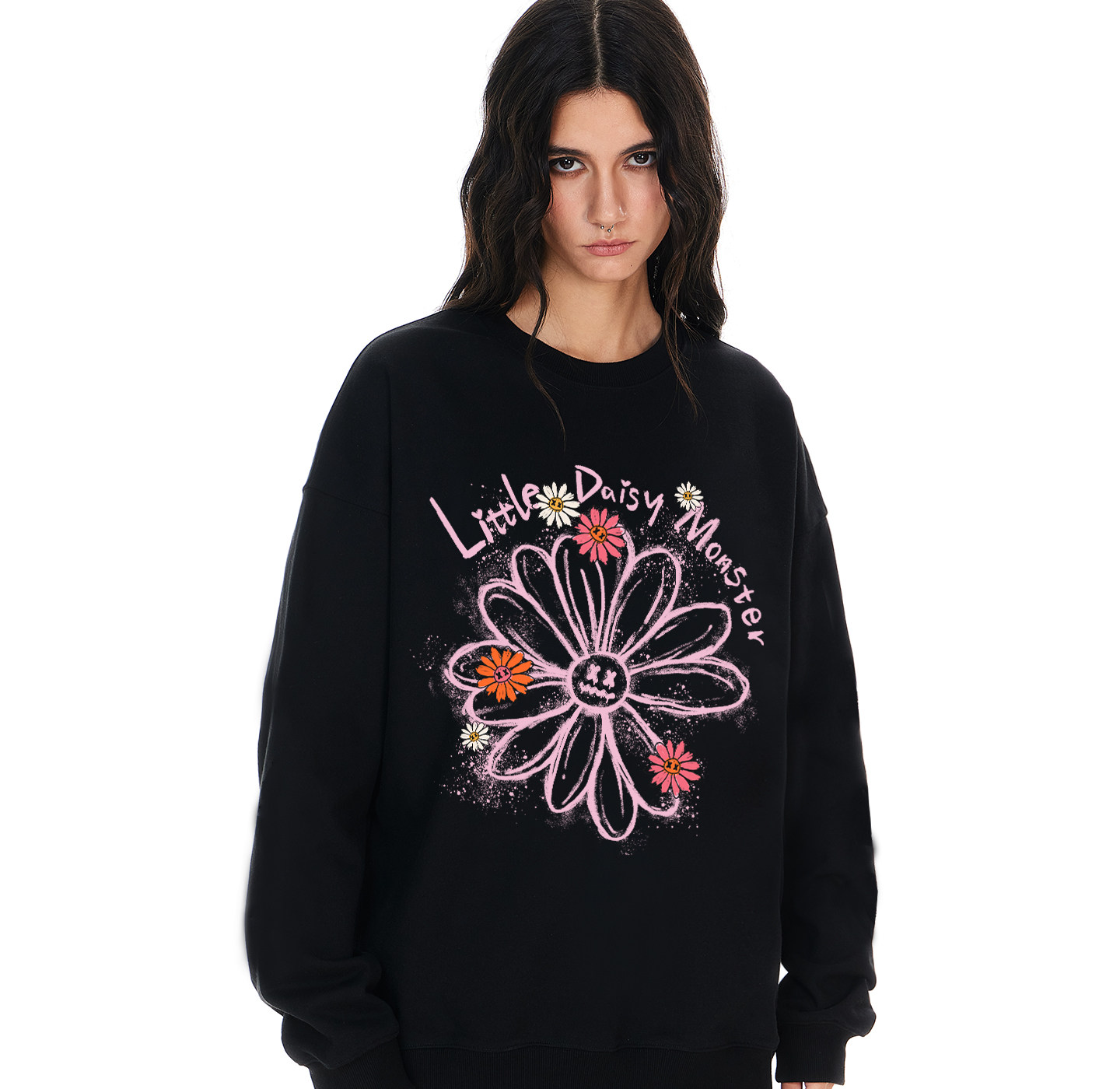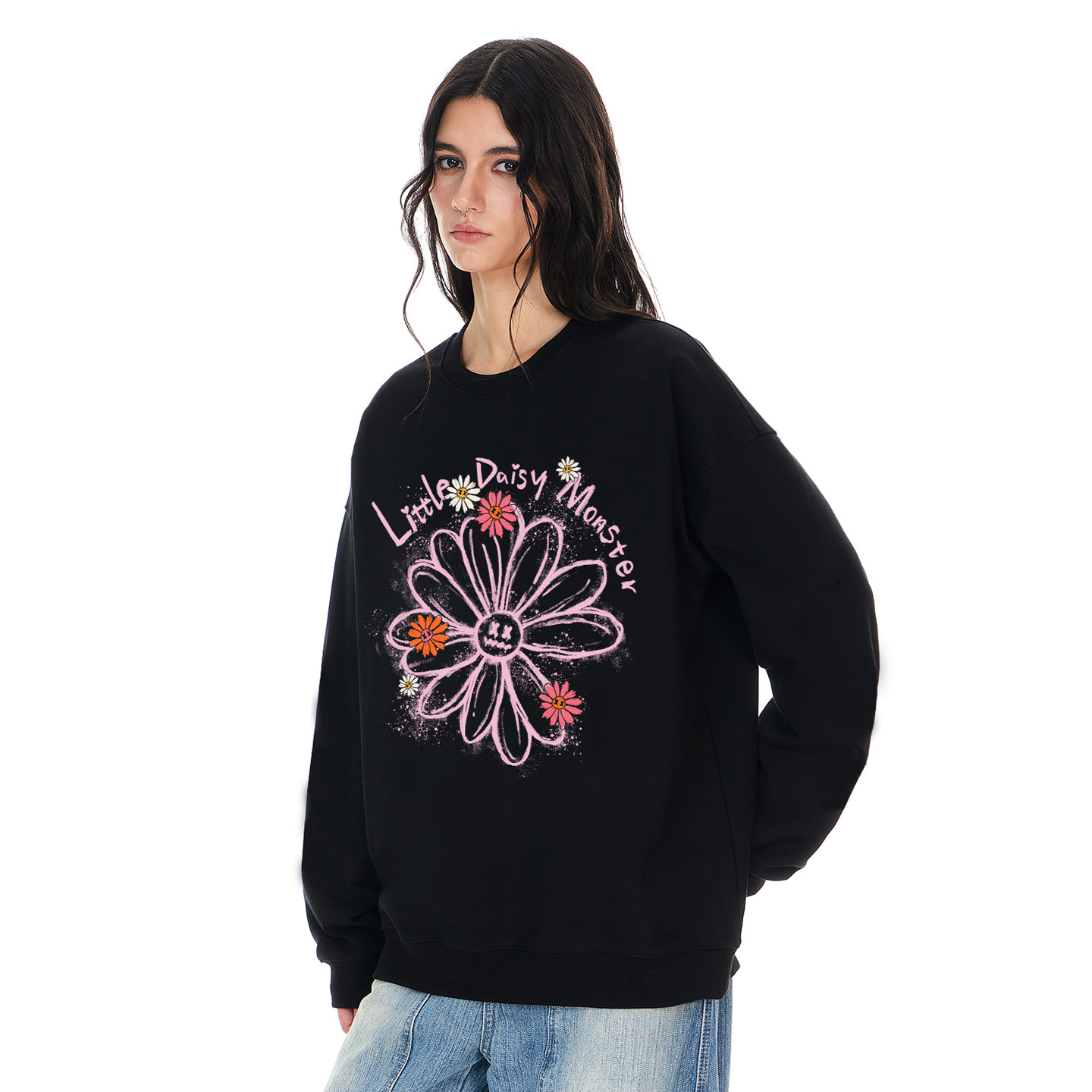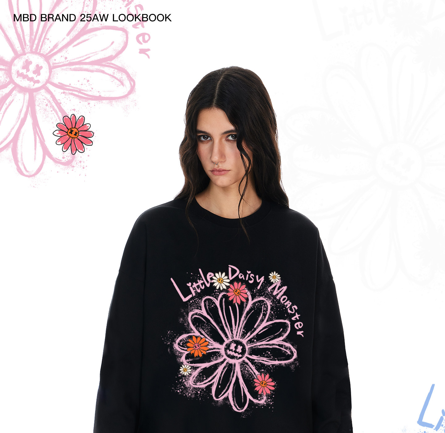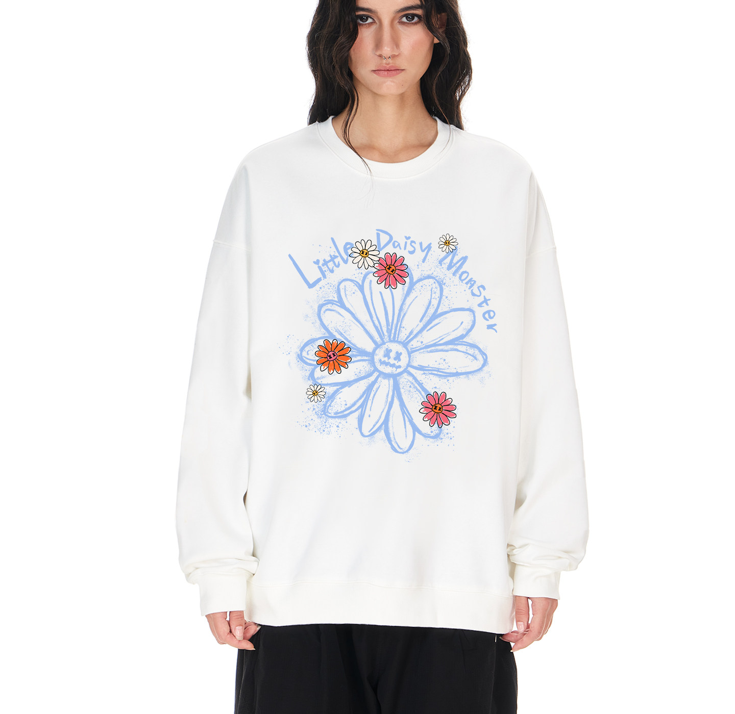 mbd Новый пуловер с круглым вырезом Little Devil, граффити и принтом ромашки для мужчин, модный топ в ленивом и откровенном стиле