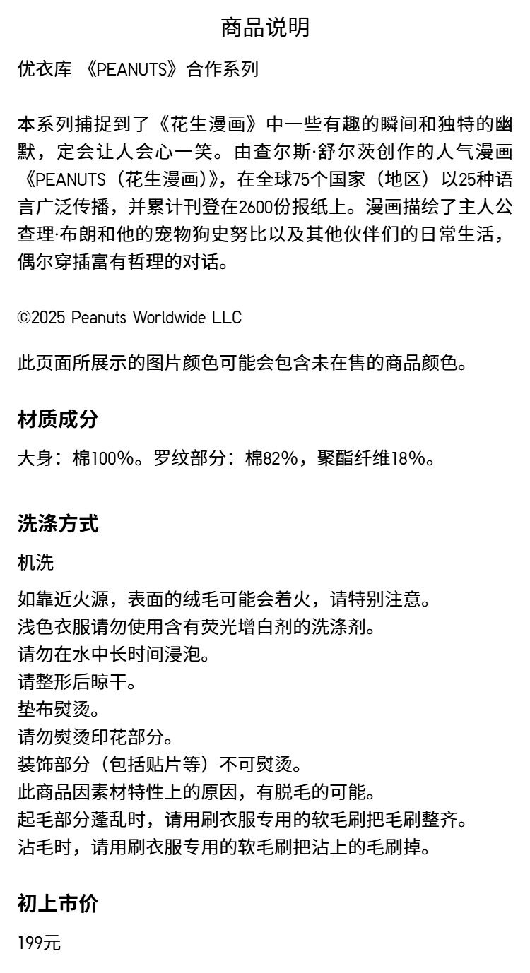 UNIQLO Мужская и женская толстовка UT PEANUTS/толстовка с длинными рукавами 485026