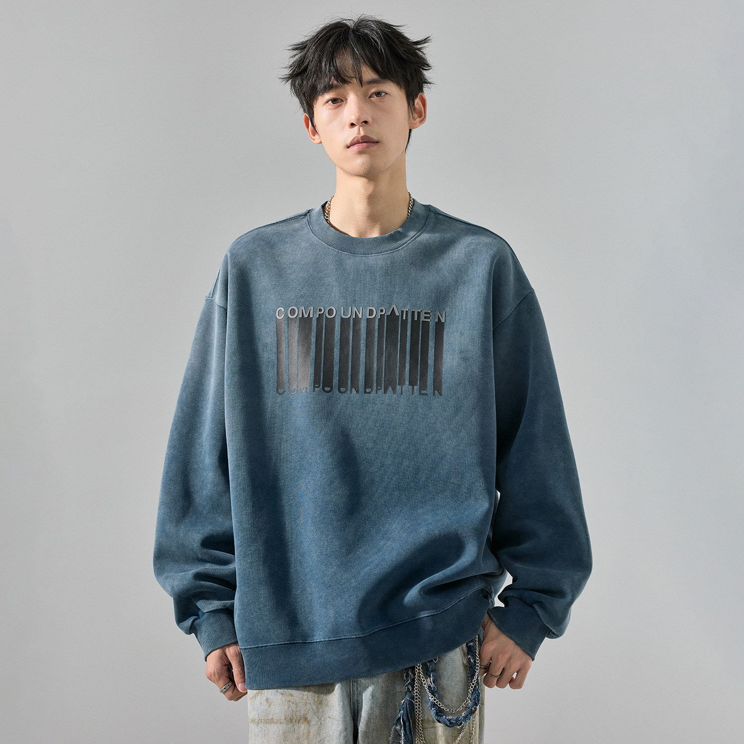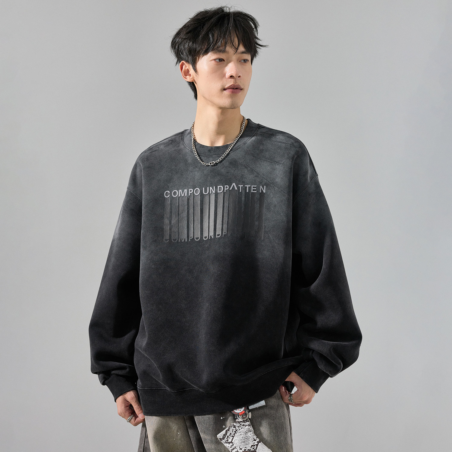 Осенняя толстовка, лонгслив с круглым воротником, оверсайз, градиент, в американском стиле
