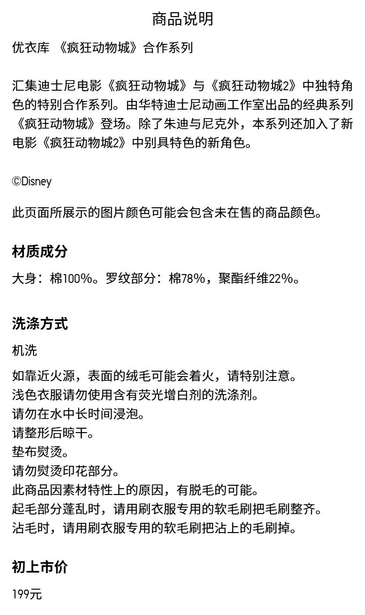 Uniqlo мужская и женская толстовка UT ZOOTOPIA/толстовка с длинными рукавами Zootopia 485030
