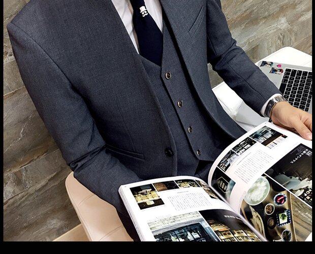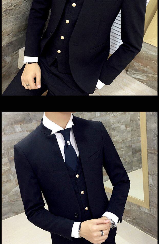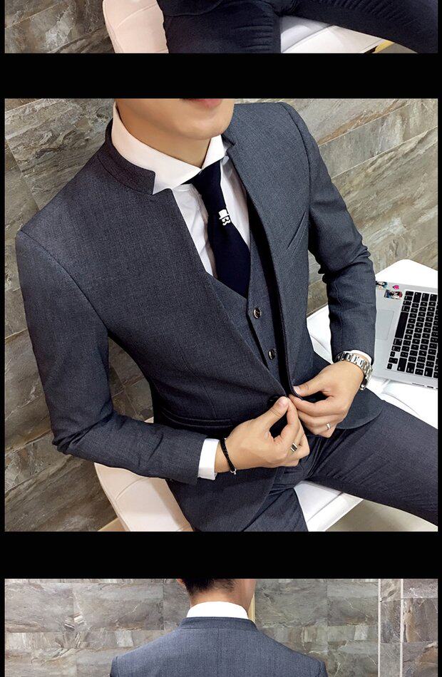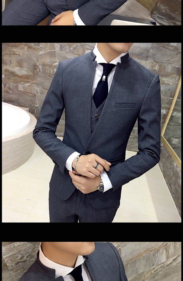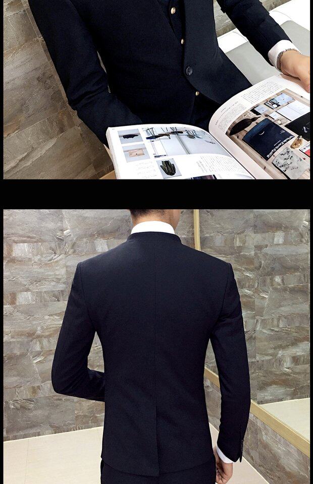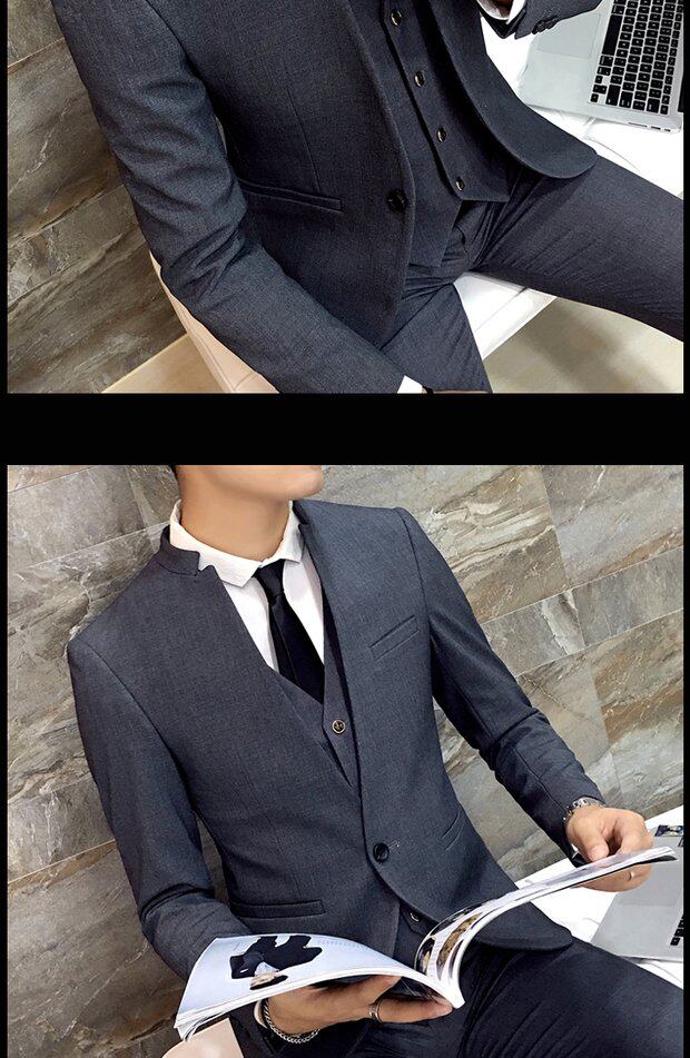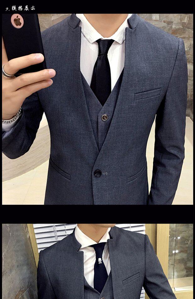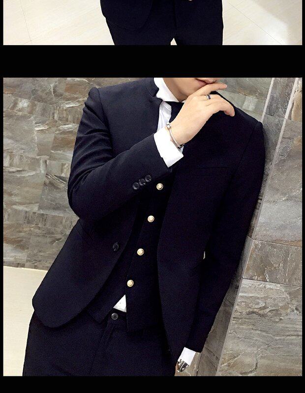 Мужской комплект, весенний корейский костюм, 3 предмета, облегающий крой, в корейском стиле