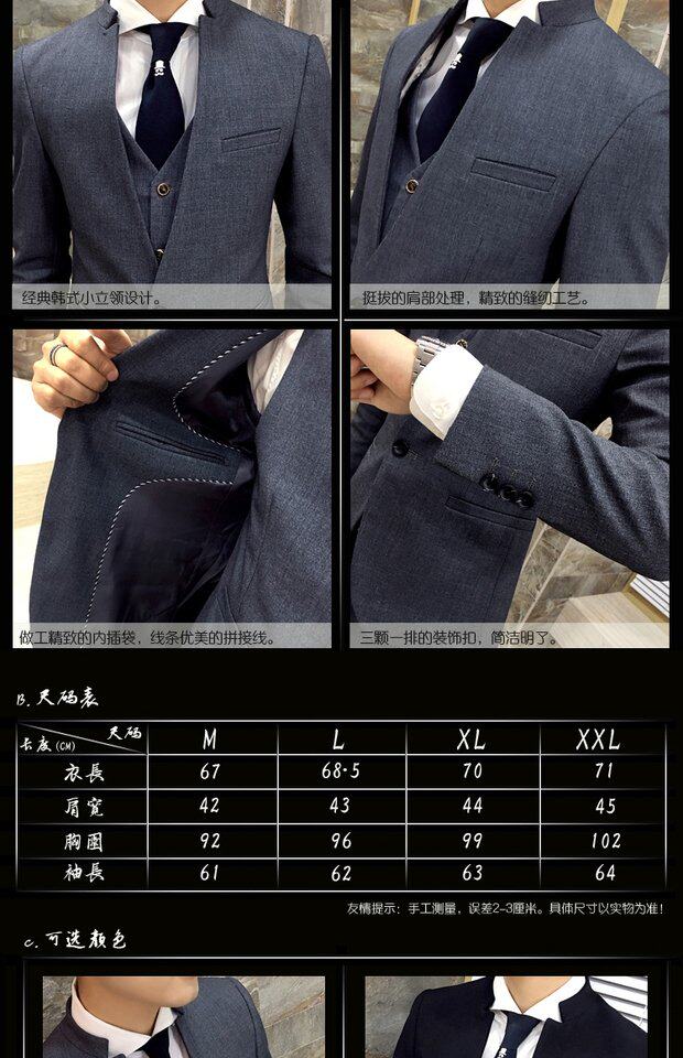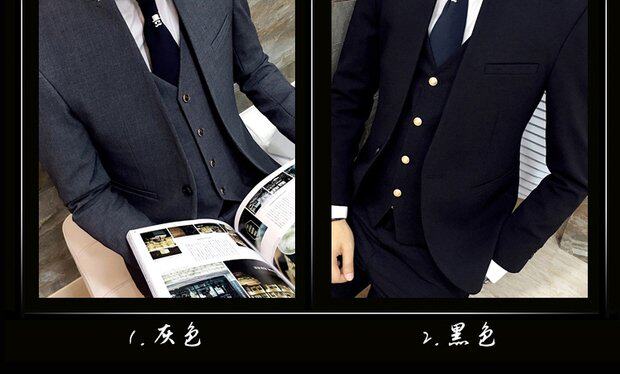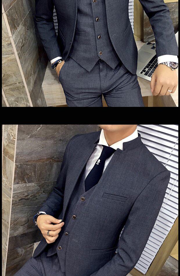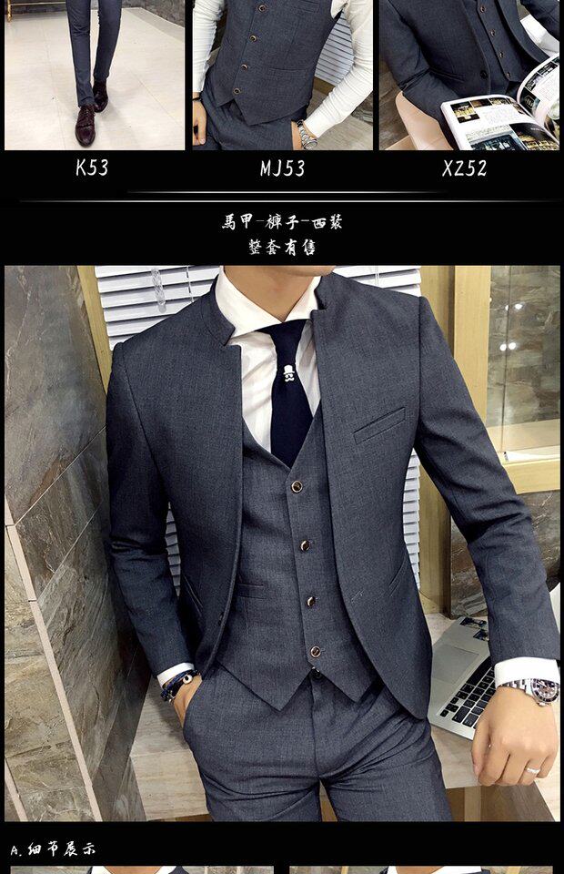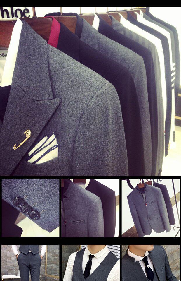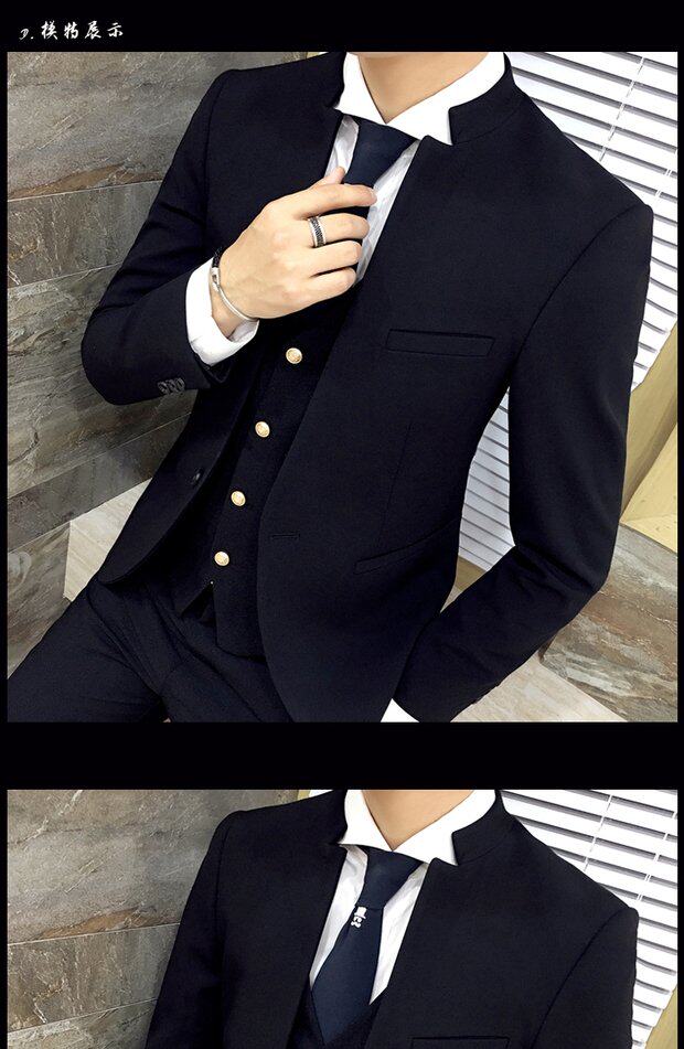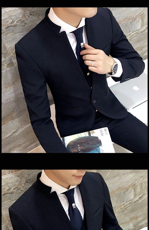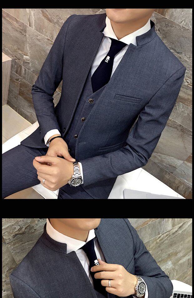 Мужской комплект, весенний корейский костюм, 3 предмета, облегающий крой, в корейском стиле