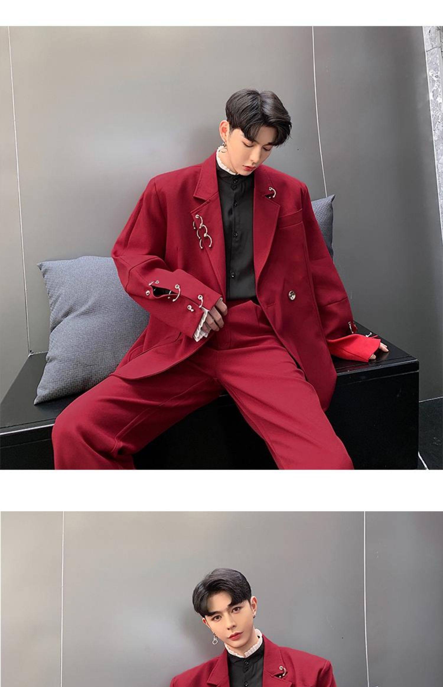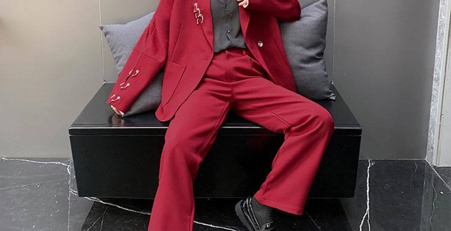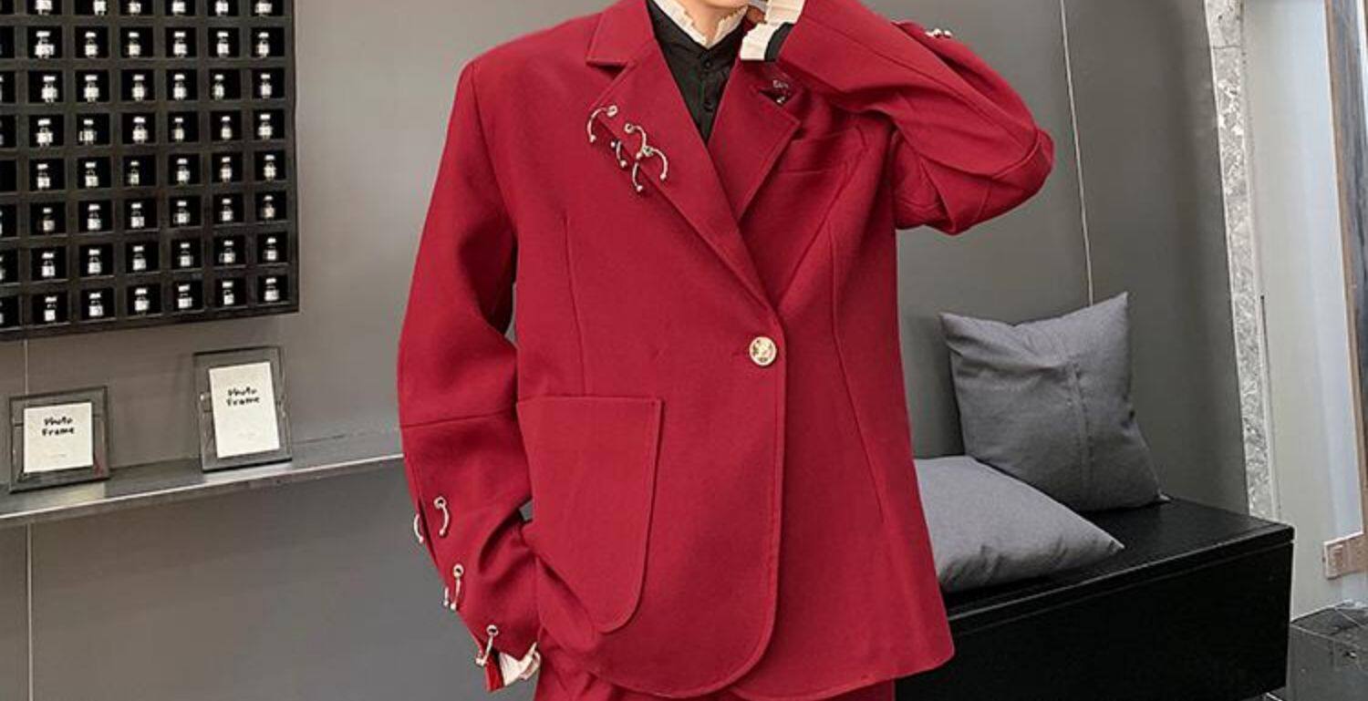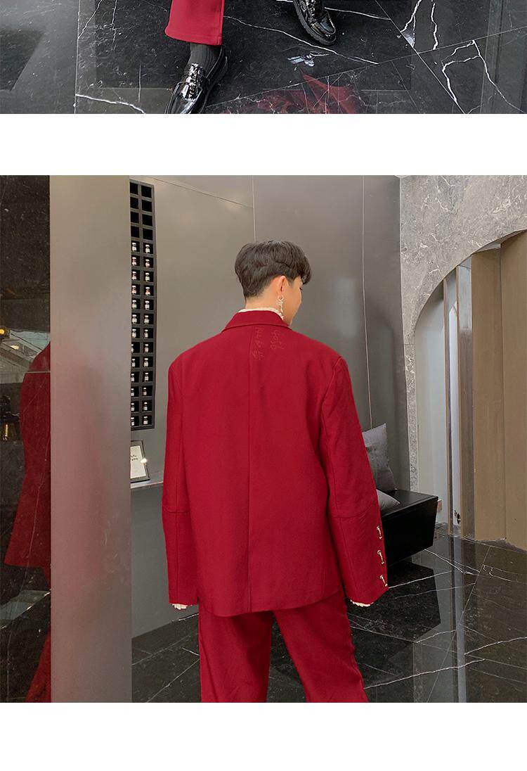 Красный пиджак классического кроя, мужская корейская модная весенняя трендовая куртка для отдыха, свободный крой
